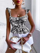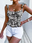بلوزة قصيرة مكشكشة بطبعة زهور بطبعة زهور وربطة عنق من الخلف كشكش