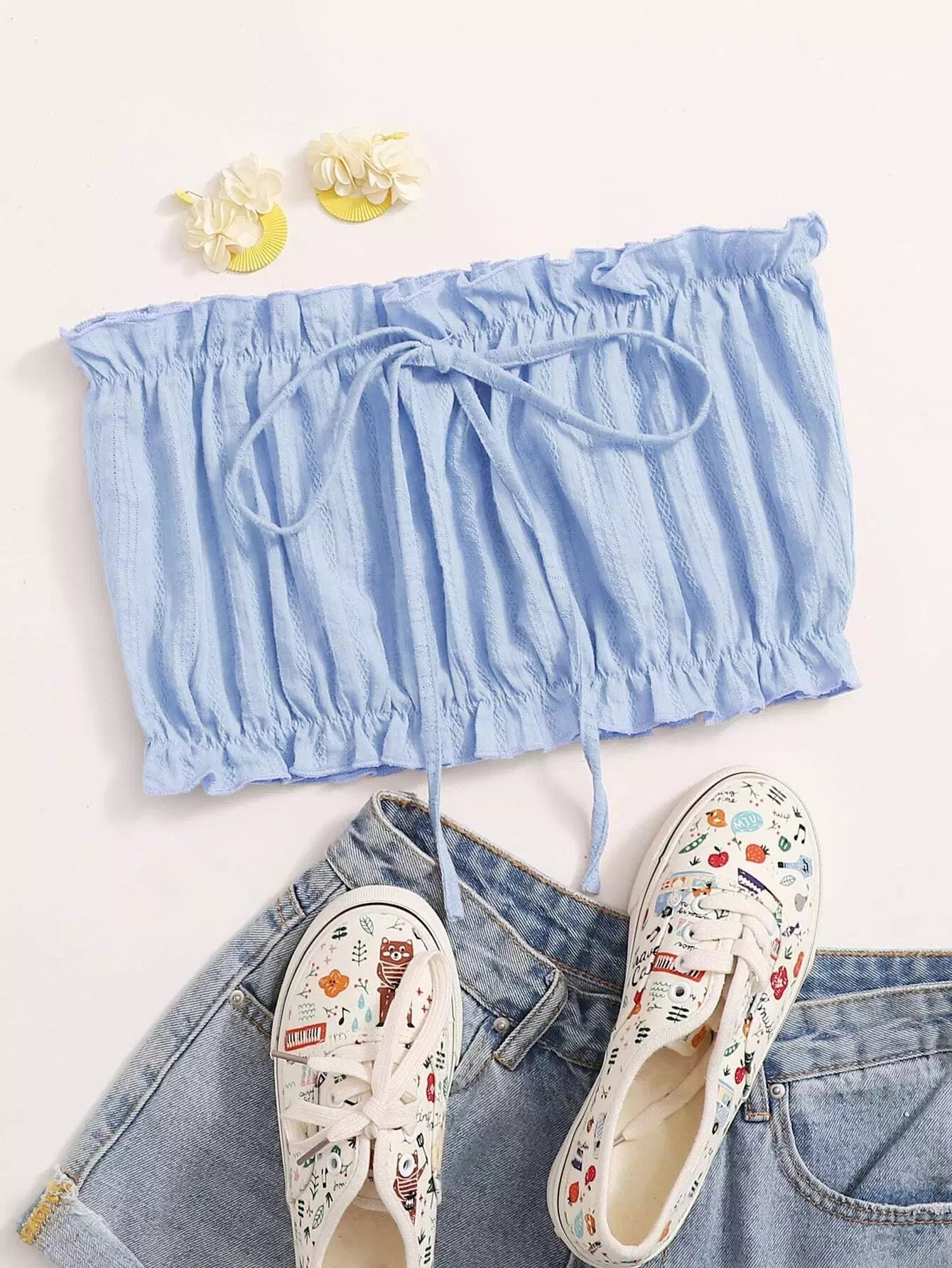 بلوزة أنبوبي بحواف كشكش مزينة بعقدة على شكل كشكش