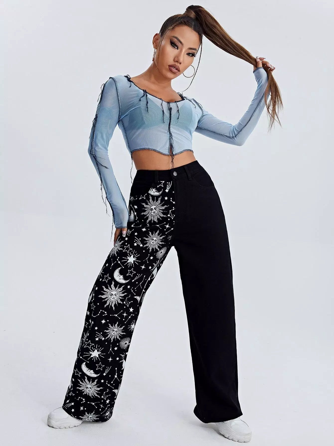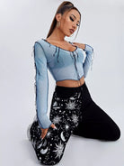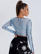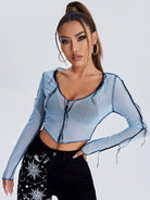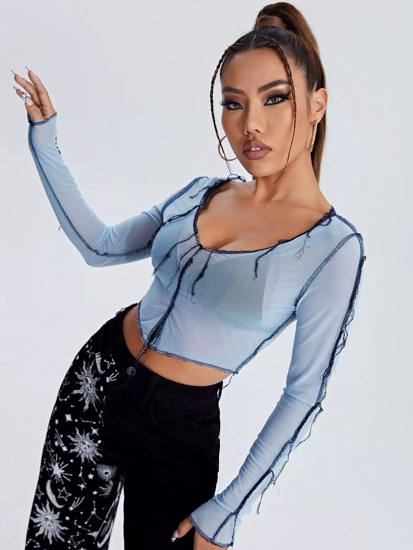 توب قصير بحواف شبكي شفاف بدون حمالة صدر