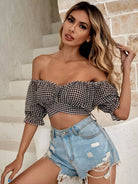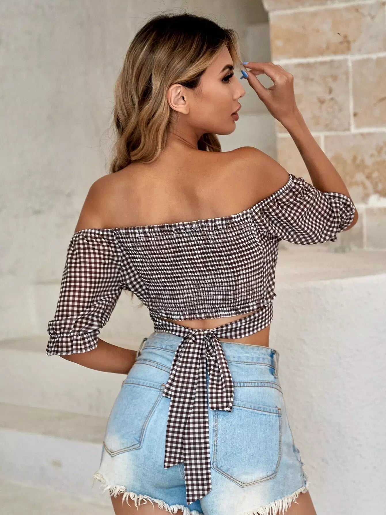 توب باردو قصير قصير بطبعة قماش قطني مطبوع بربطة عنق على الظهر