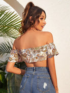 بلوزة بدون أكتاف بطباعة جرافيكية مع ربطة أمامية