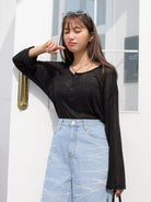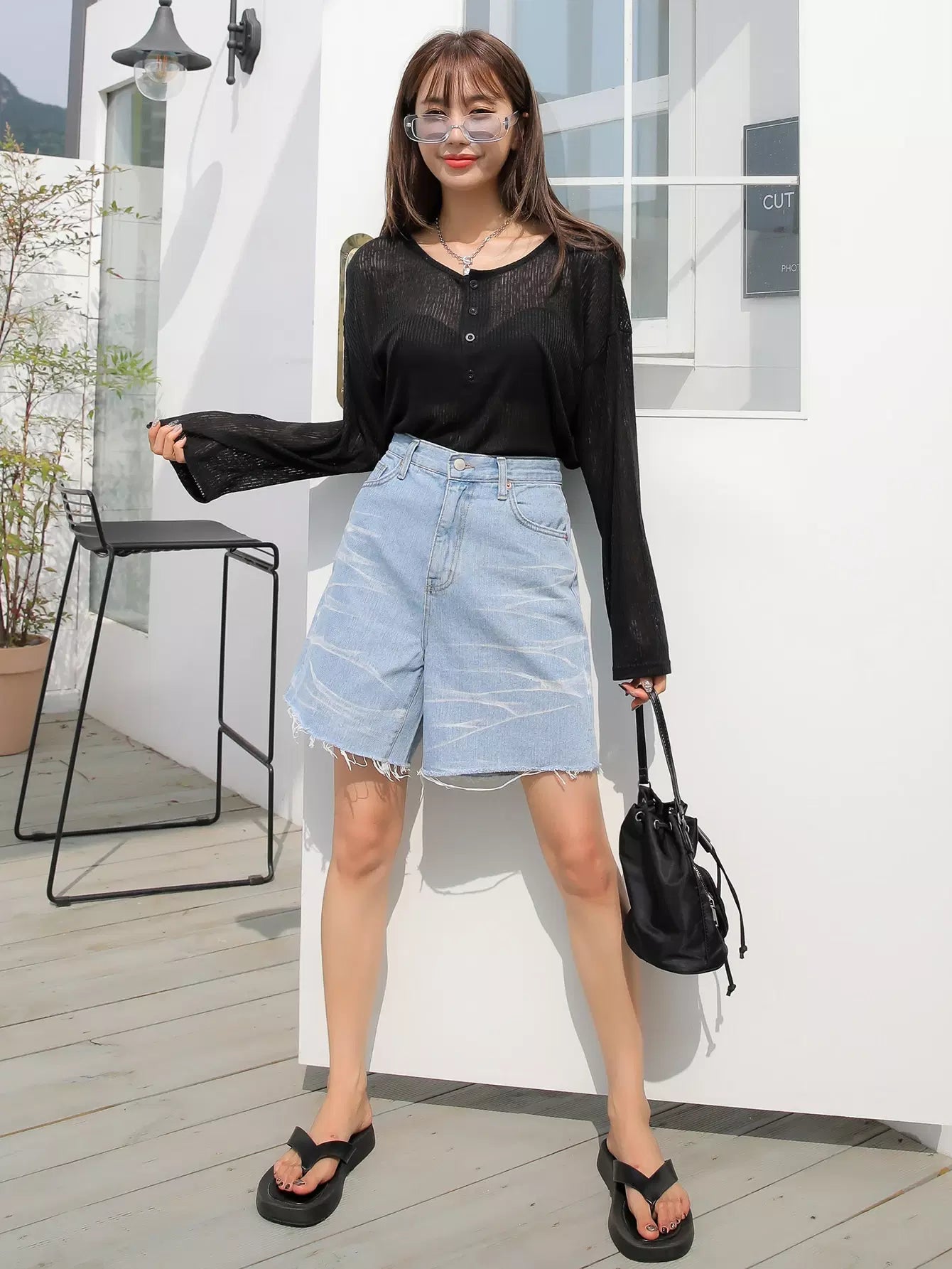 بلوزة منسدلة على الكتف بنصف زر بنصف كتف