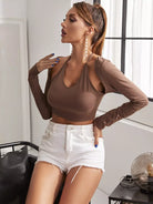 بلوزة قصيرة قصيرة بياقة قصيرة بفتحة من الخلف وربطة عنق حول العنق