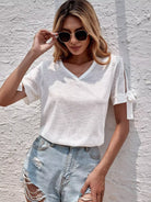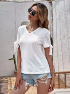 بلوزة برقبة على شكل عقدة على شكل V برقبة شفافة