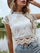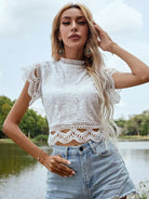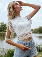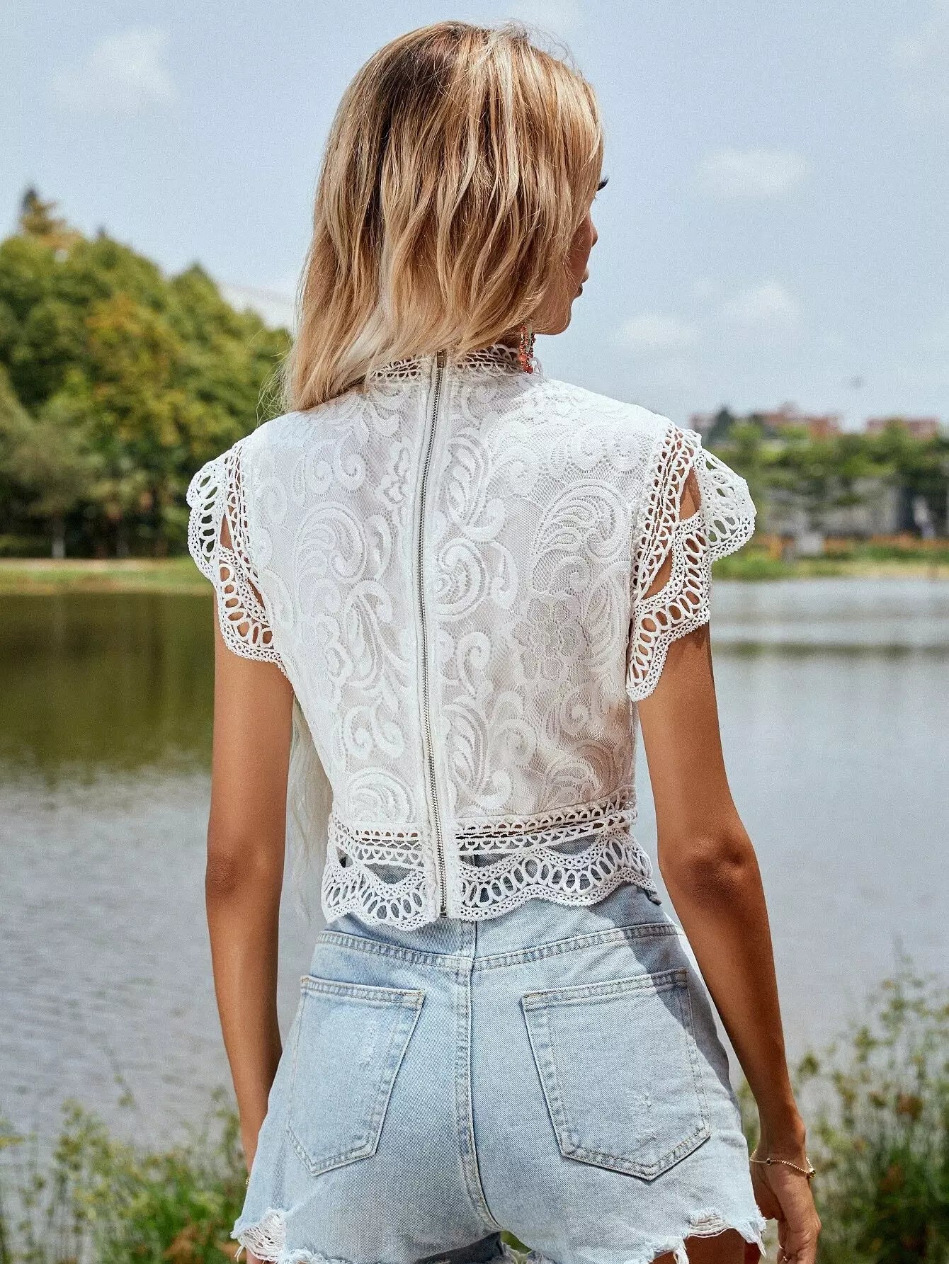 بلوزة قصيرة بياقة من الدانتيل برقبة من الدانتيل وسحّاب من الخلف