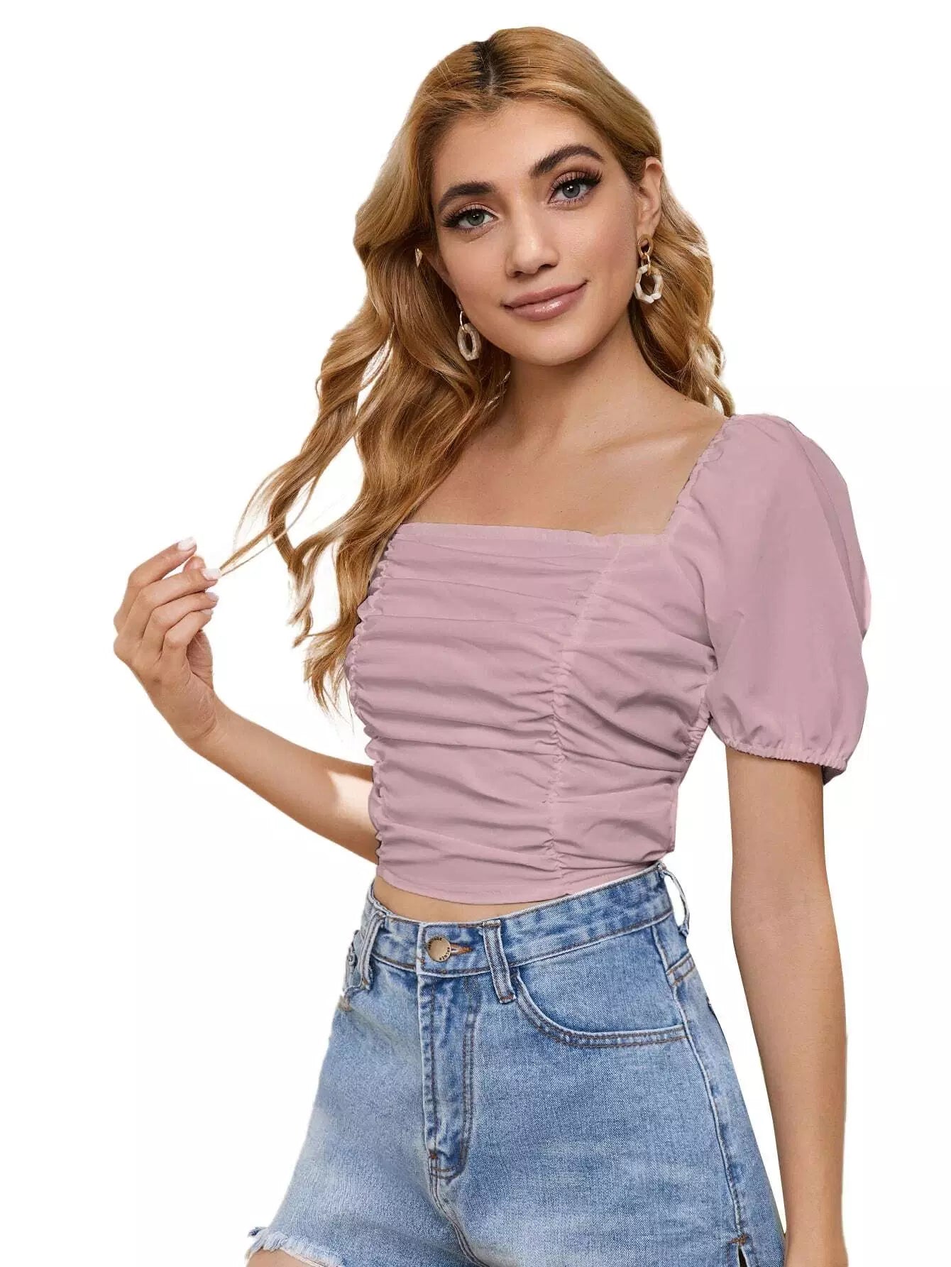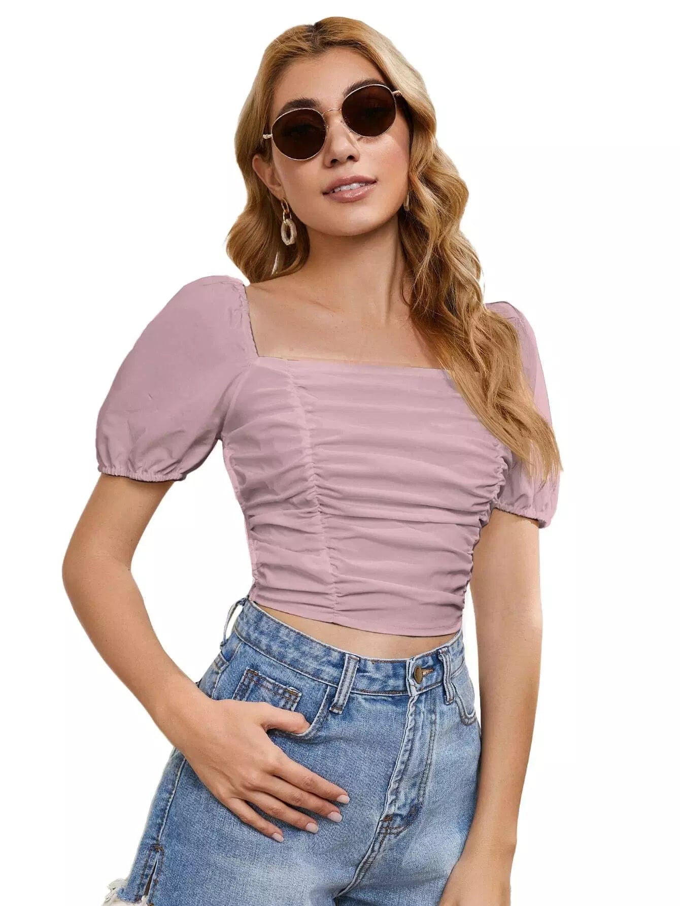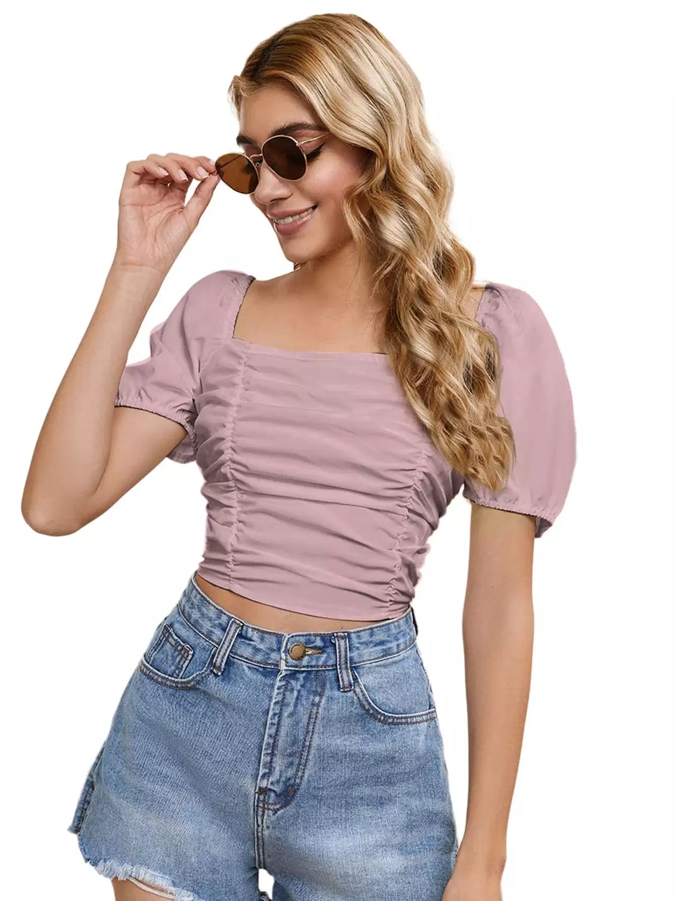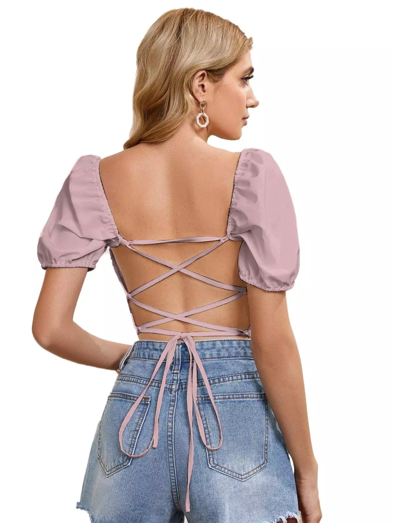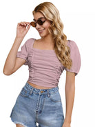 النساء - بلوزة قصيرة مكشكشة من الأمام بأربطة من الخلف