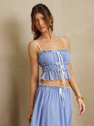 بلوزة صيفية أنيقة من L'Amorae، من الشيفون، بدون أكمام، مع كشكشة، وربطة أمامية