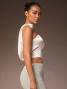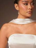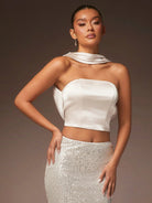 L'Amorae Women Clothes, Elegant Champagne Satin Solid Reversible Draped Fashion Backless Bandeau Top,