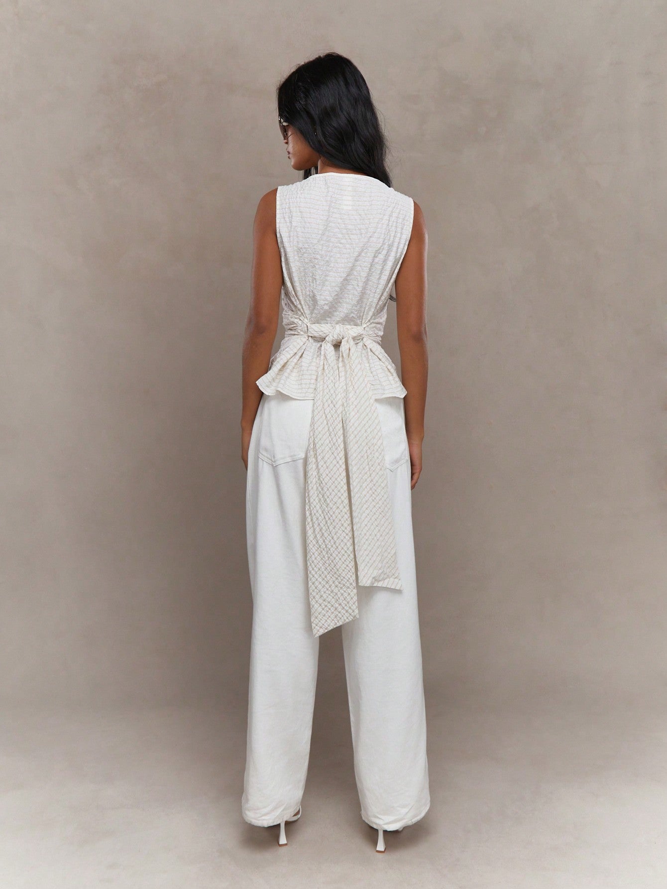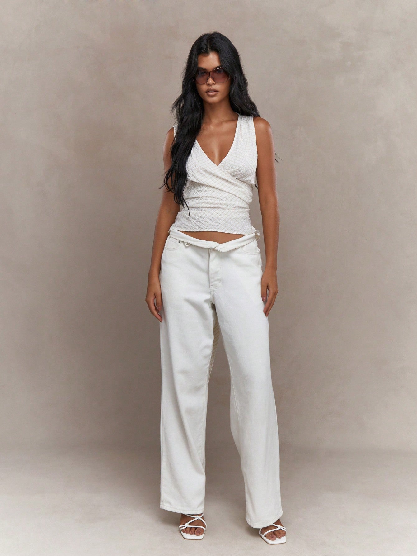 MISSGUIDED Textured Plunge Neck Wrap Sleeveless Top With Belt