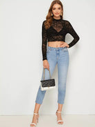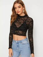 بلوزة شبكية بياقة وهمية بياقة من نسيج جيو شبكي بدون حمالة صدر