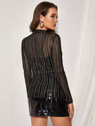 للنساء - بلوزة شفافة لامعة برقبة وهمية بدون قميص داخلي