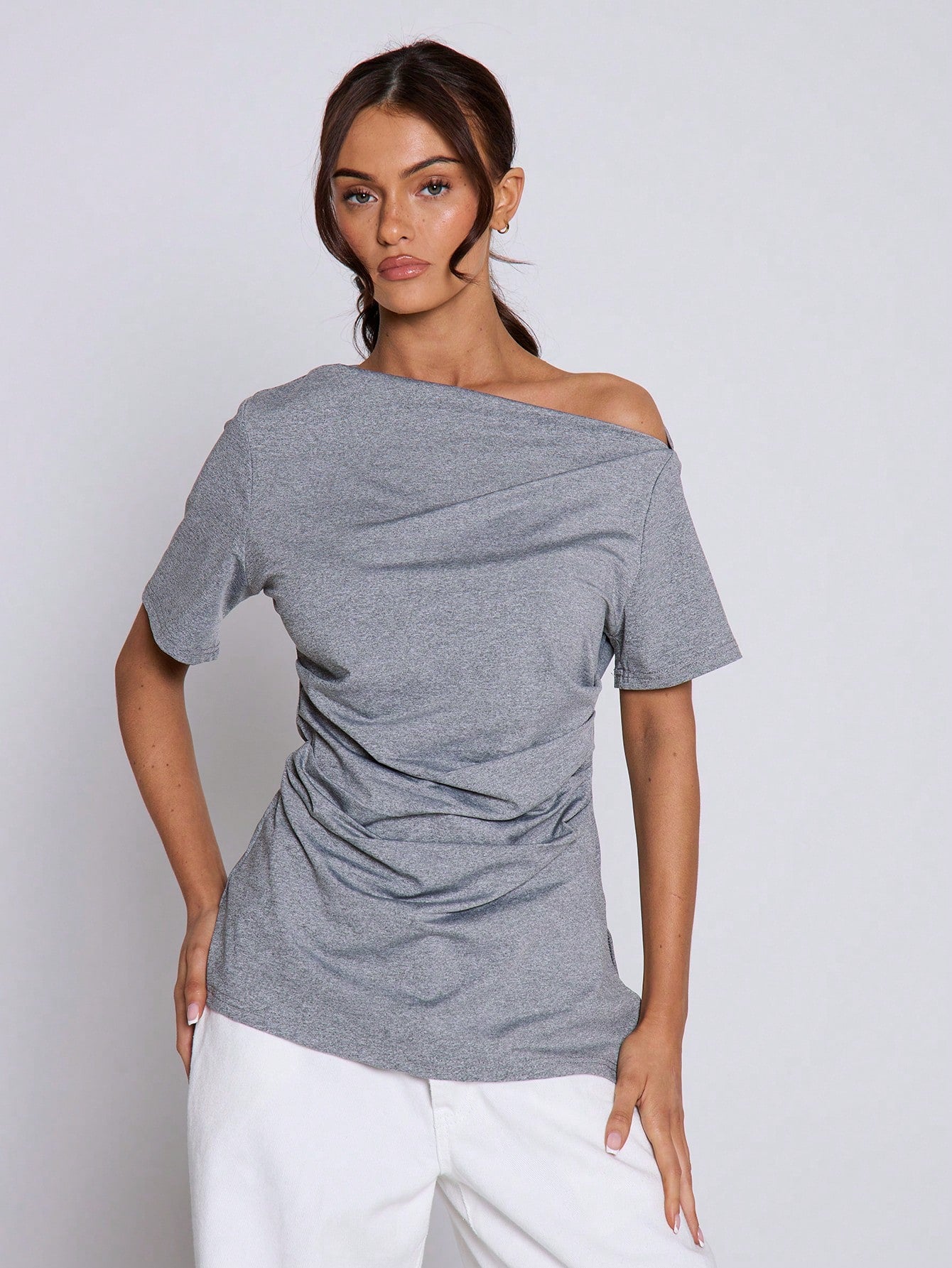 MUSERA Cinched Waist Asymmetrical Neck Top Spring Summer Casual Airport Outfits Holiday