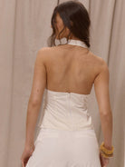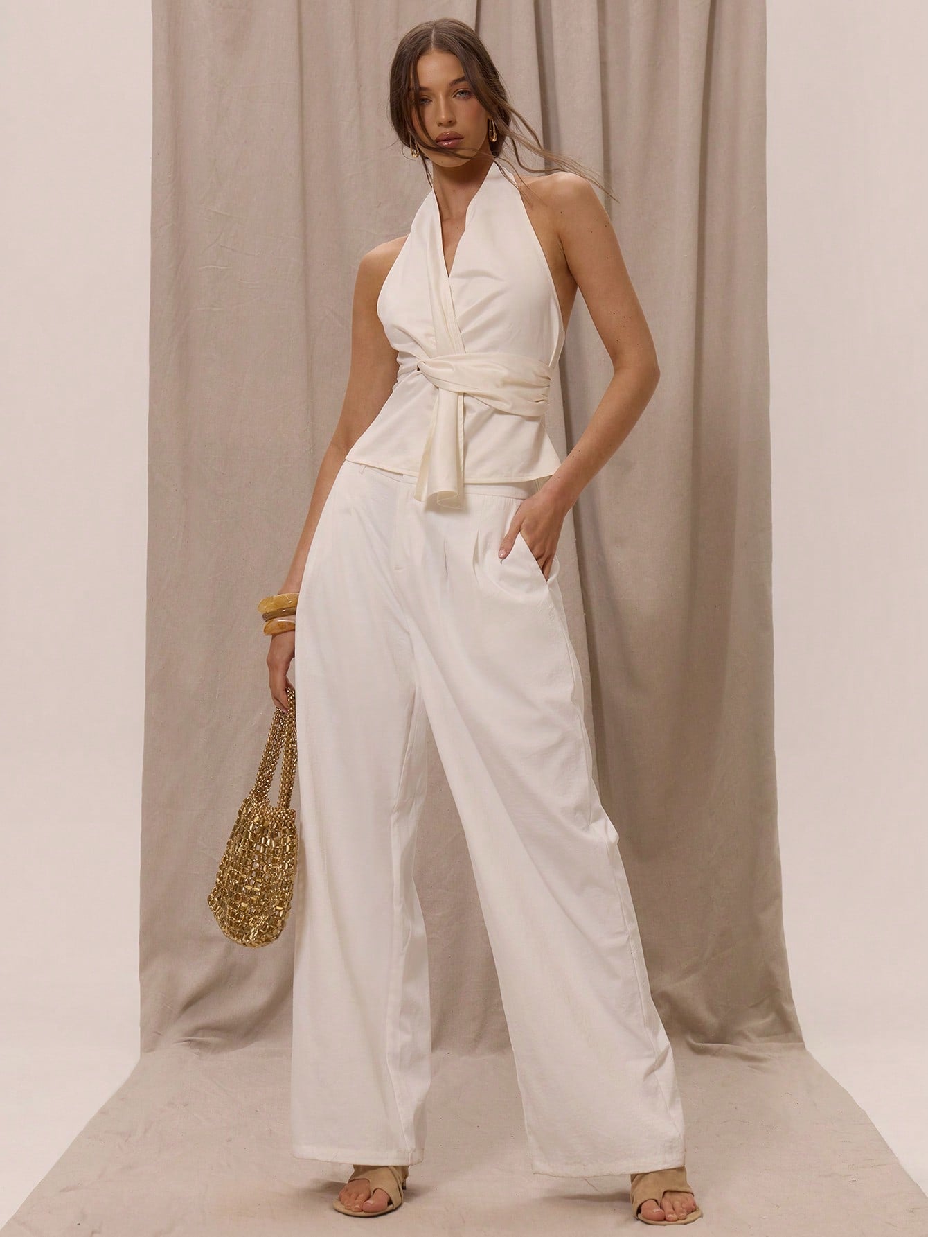MUSERA Halterneck Plunge Front Wrap Twist Detail Sleeveless Top Vacation Holiday Elegant Beachwear Boho