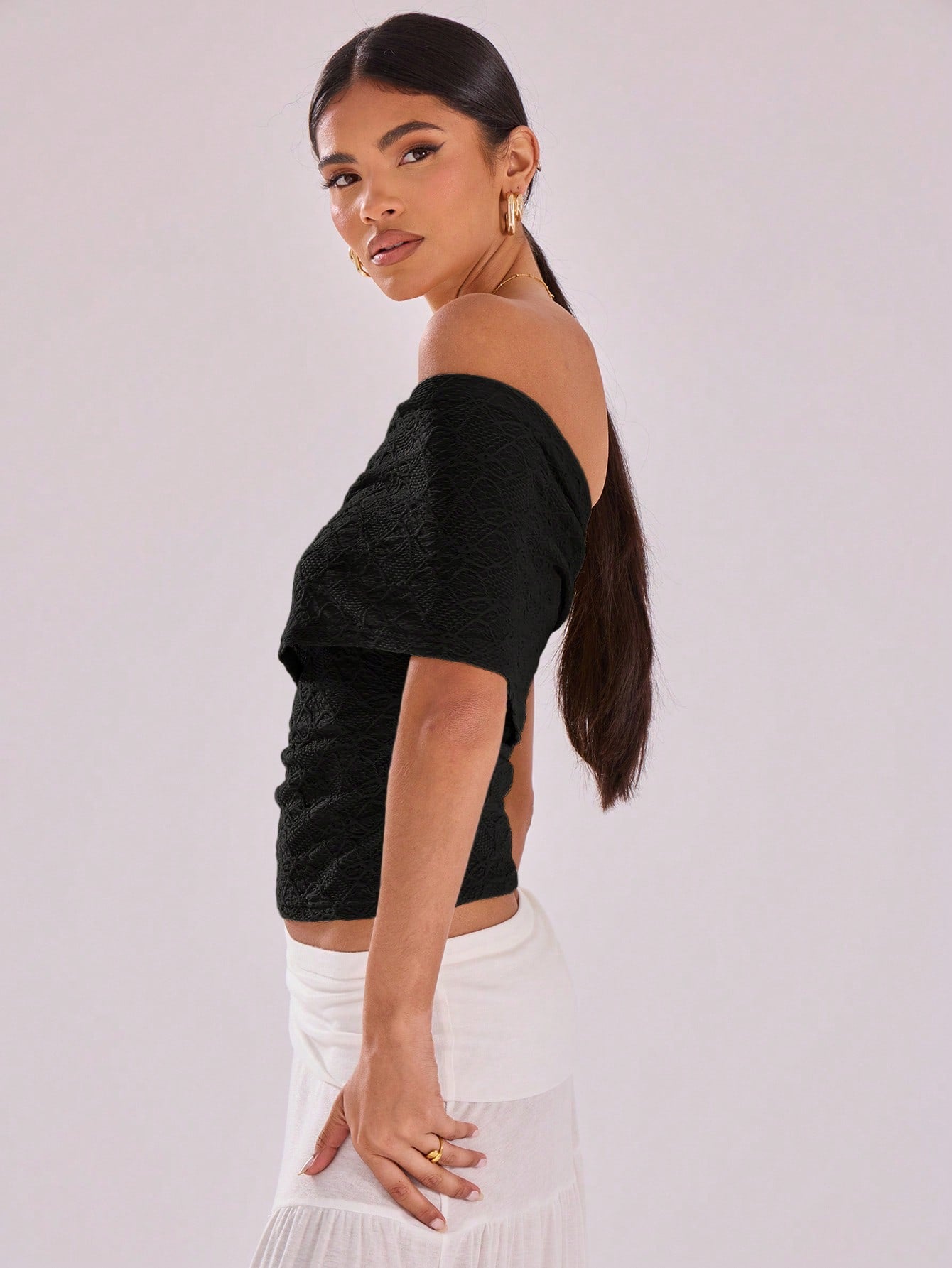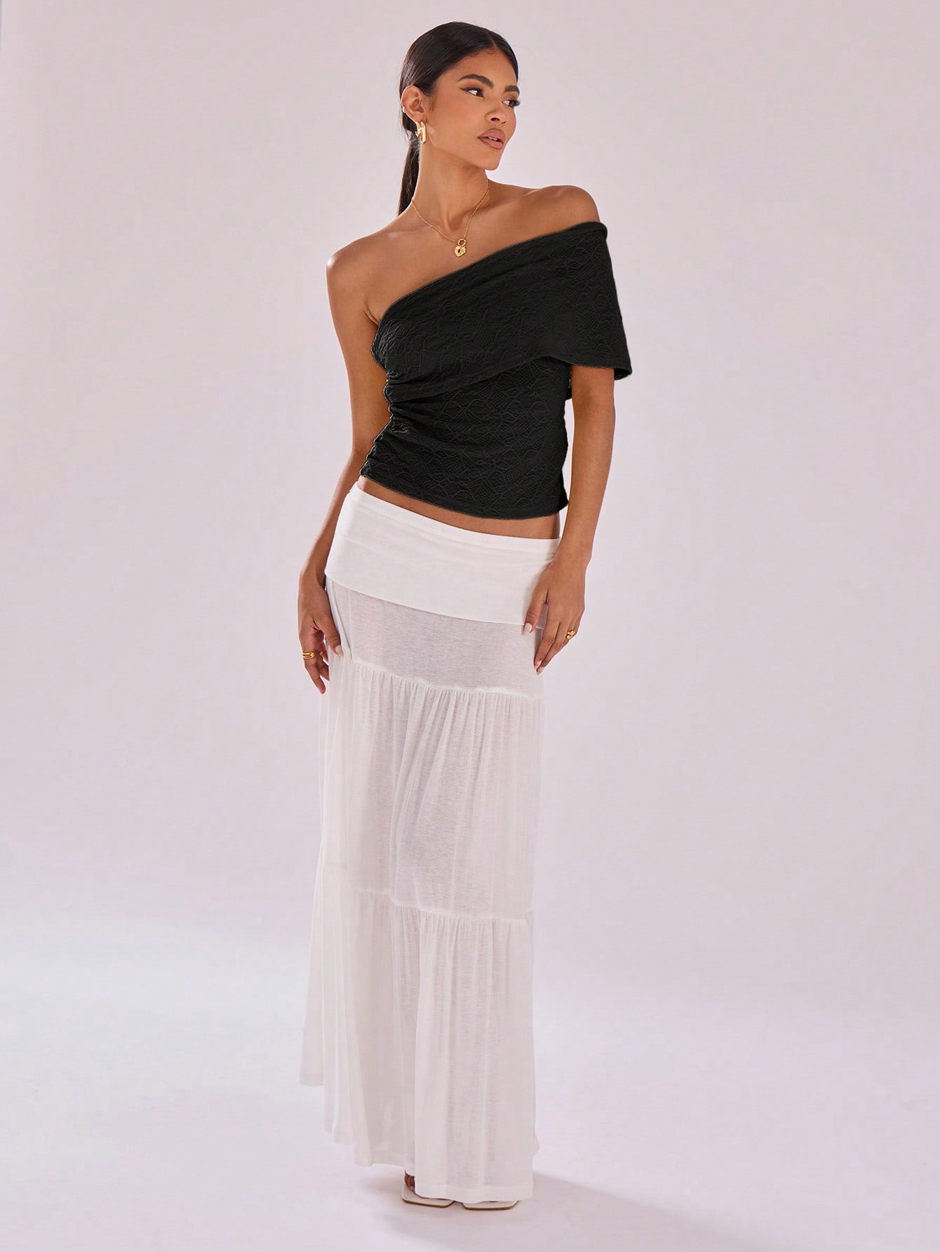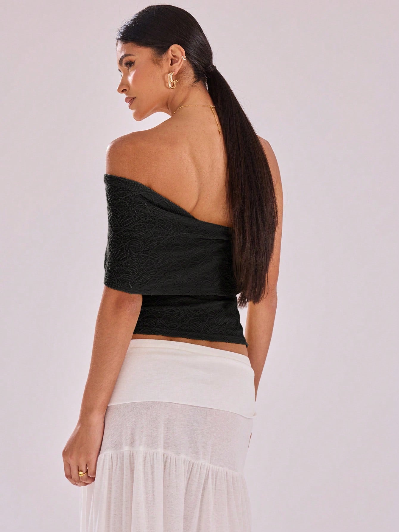 بلوزة شبكية منقوشة من موسيرا، مثالية للعطلات والإطلالات الكاجوال، بياقة غير متماثلة، مناسبة للرحلات والسفر والسهرات.