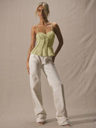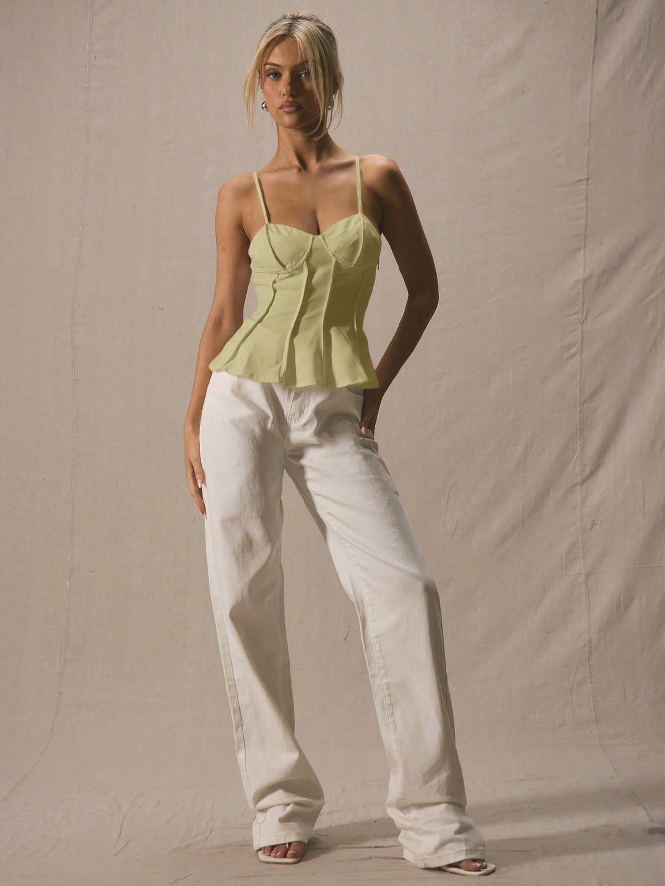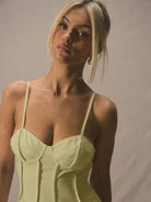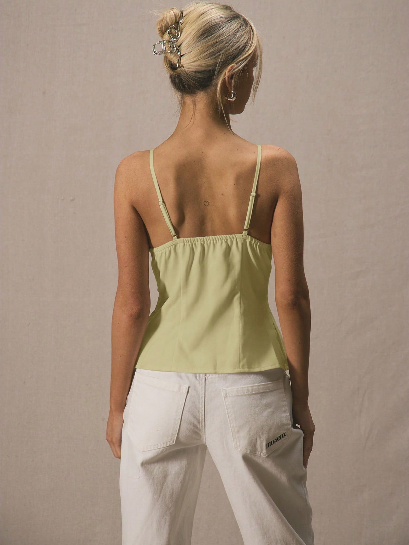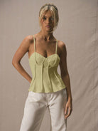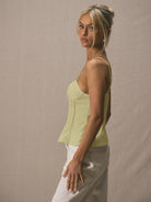 MUSERA Thin Cami Strap Binding Detail Fitted Flared Hem Top Spring Summer Cute Vacation 90's Style Elegant