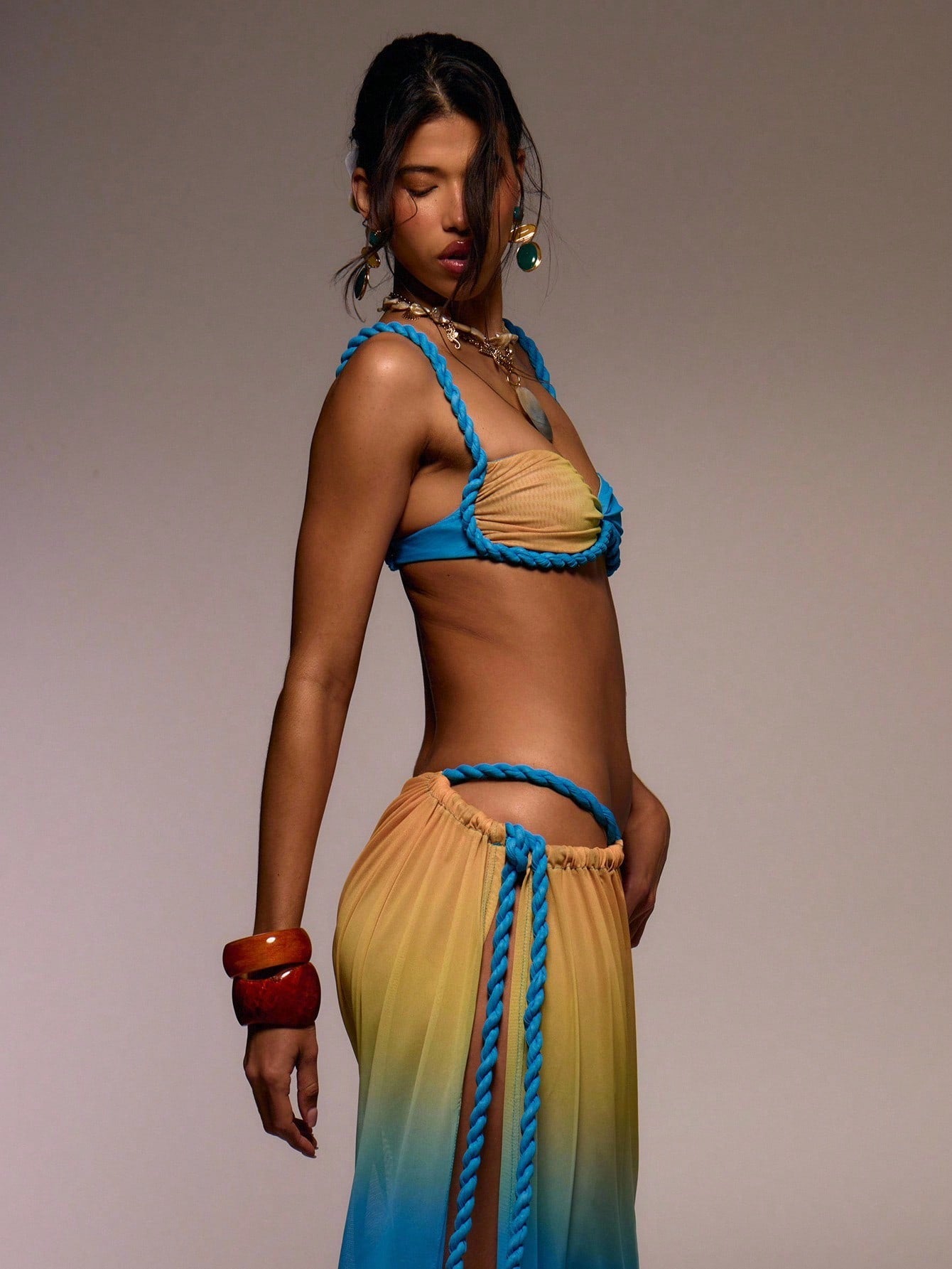 حمالة صدر شبكية مطبوعة ومزينة برباط حبل ملتوي من موسيرا، مناسبة لفصل الربيع