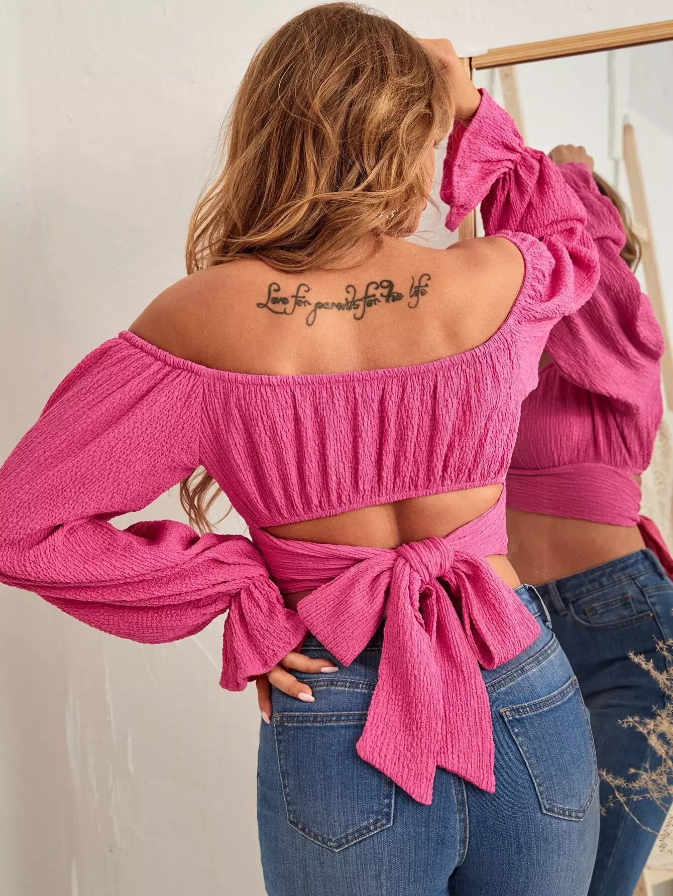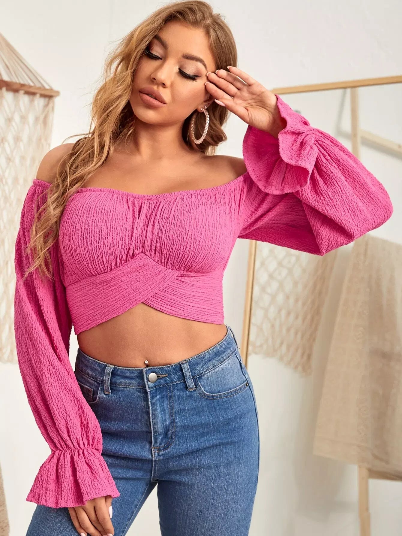 للنساء - بلوزة بأكمام واسعة مكشوفة الكتفين