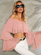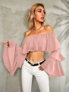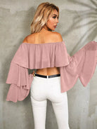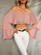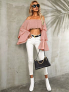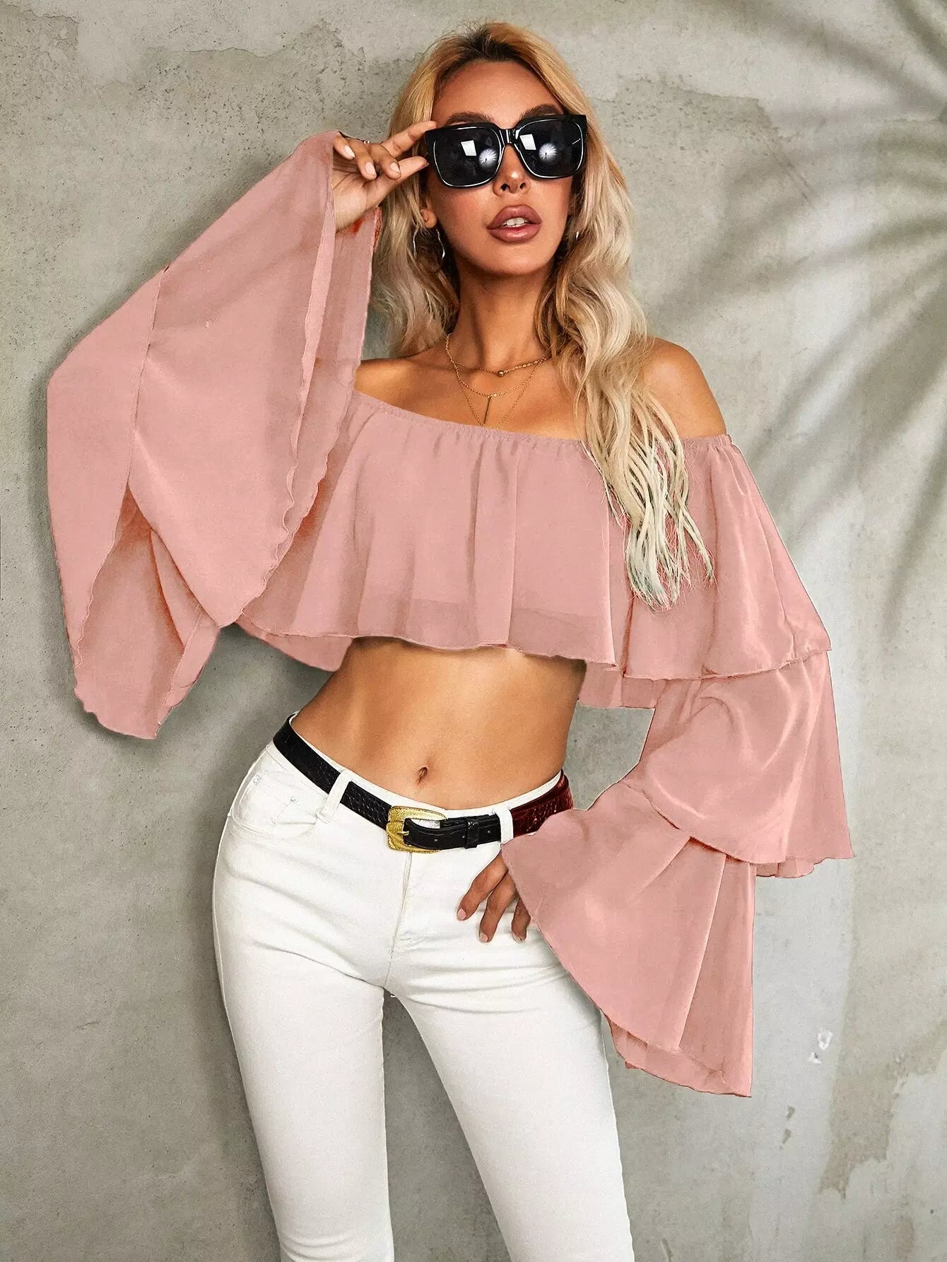 بلوزة قصيرة بأكمام متعددة الطبقات مكشوفة الأكتاف