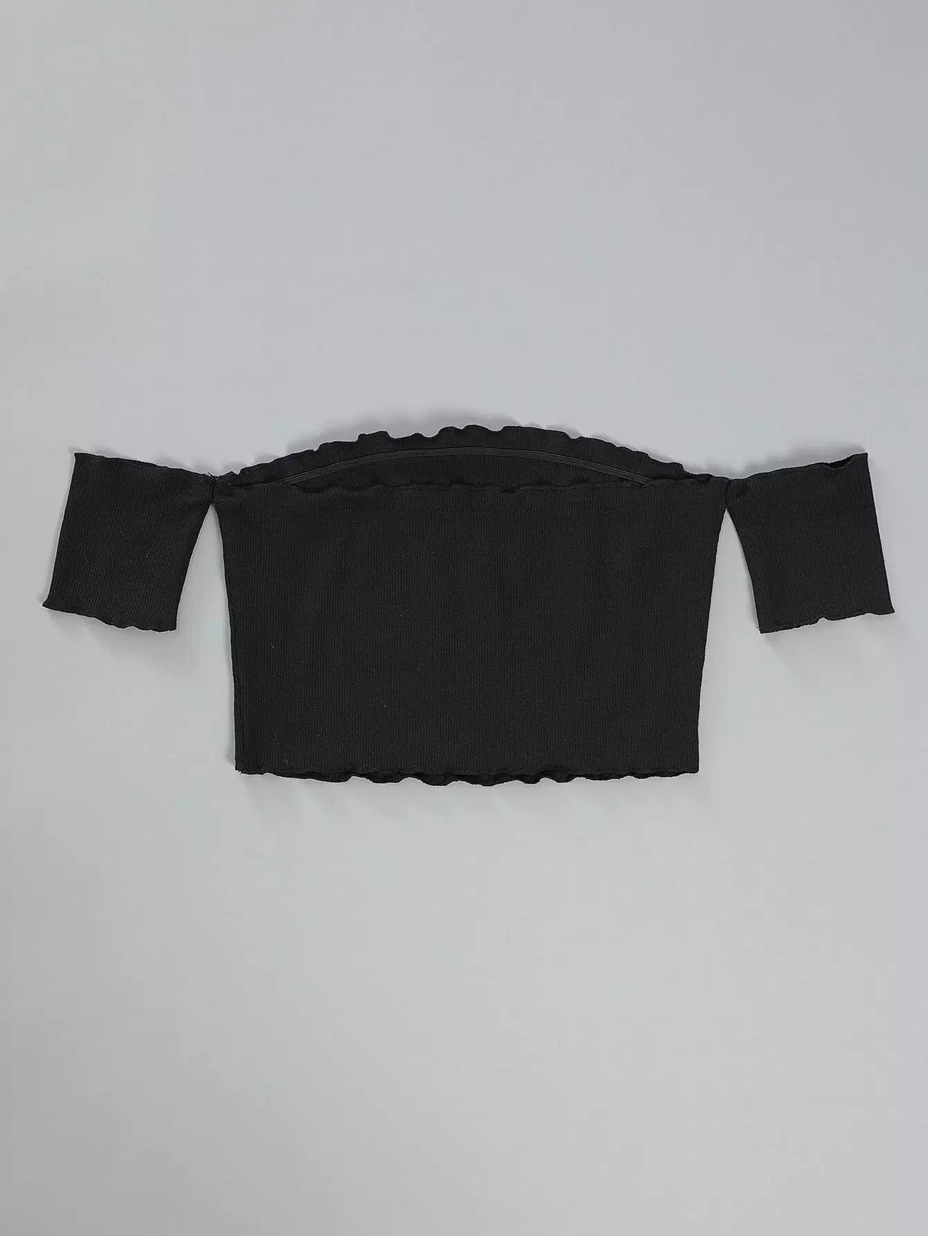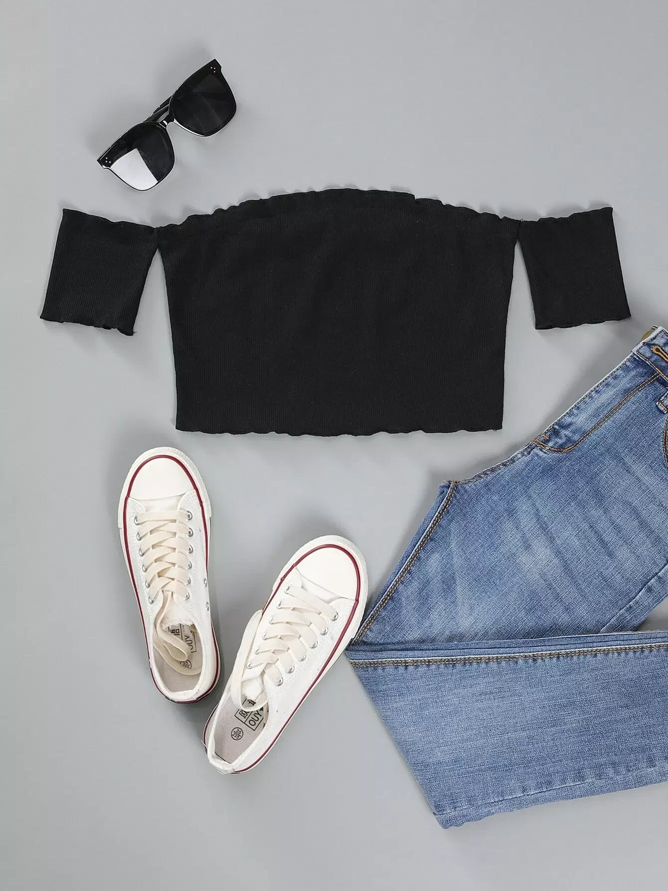 توب قصير بحواف من دون أكتاف بحواف من الخس