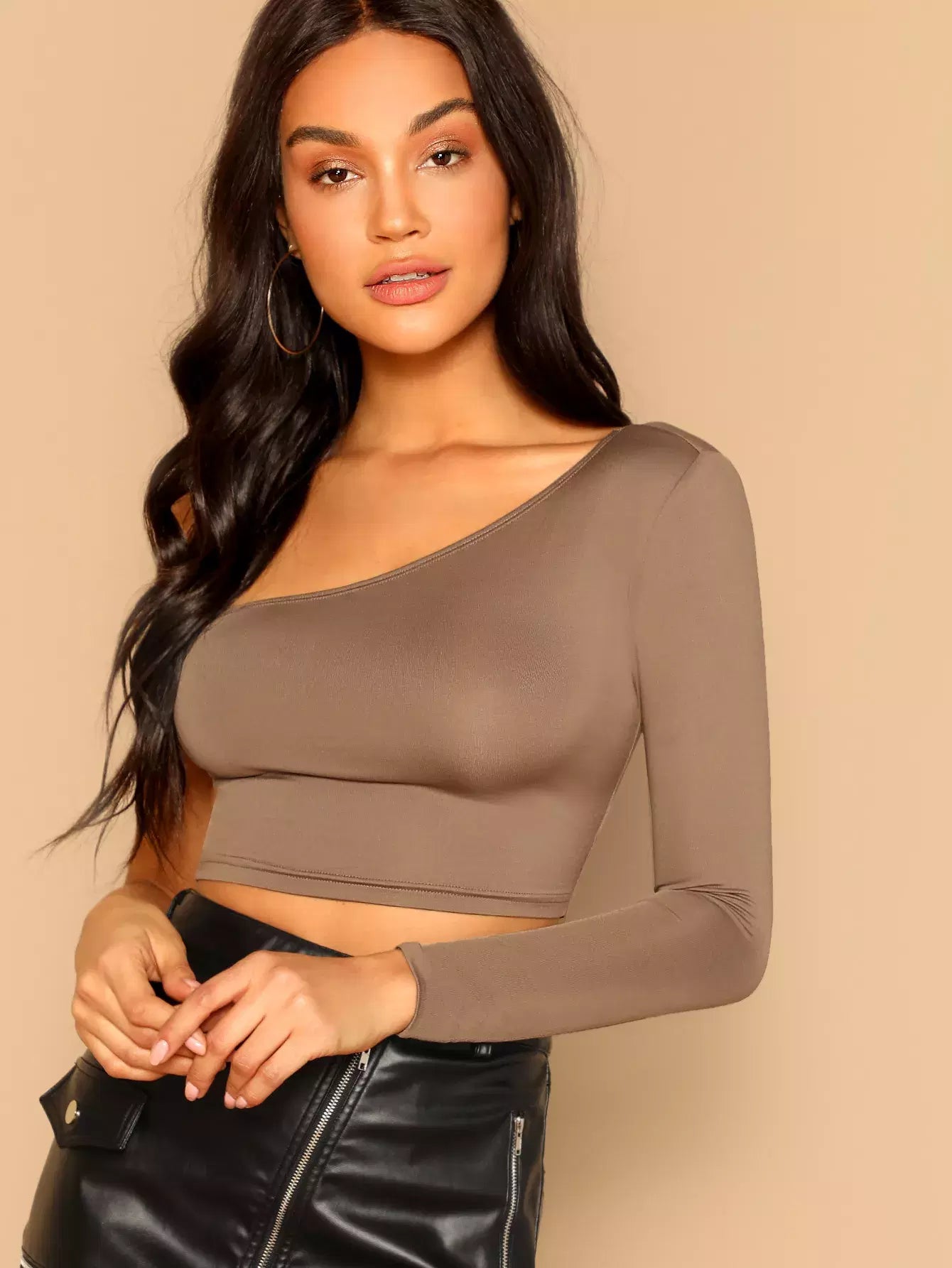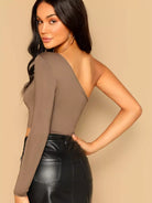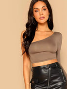 تي شيرت قصير بكتف واحد قصير على كتف واحد
