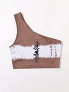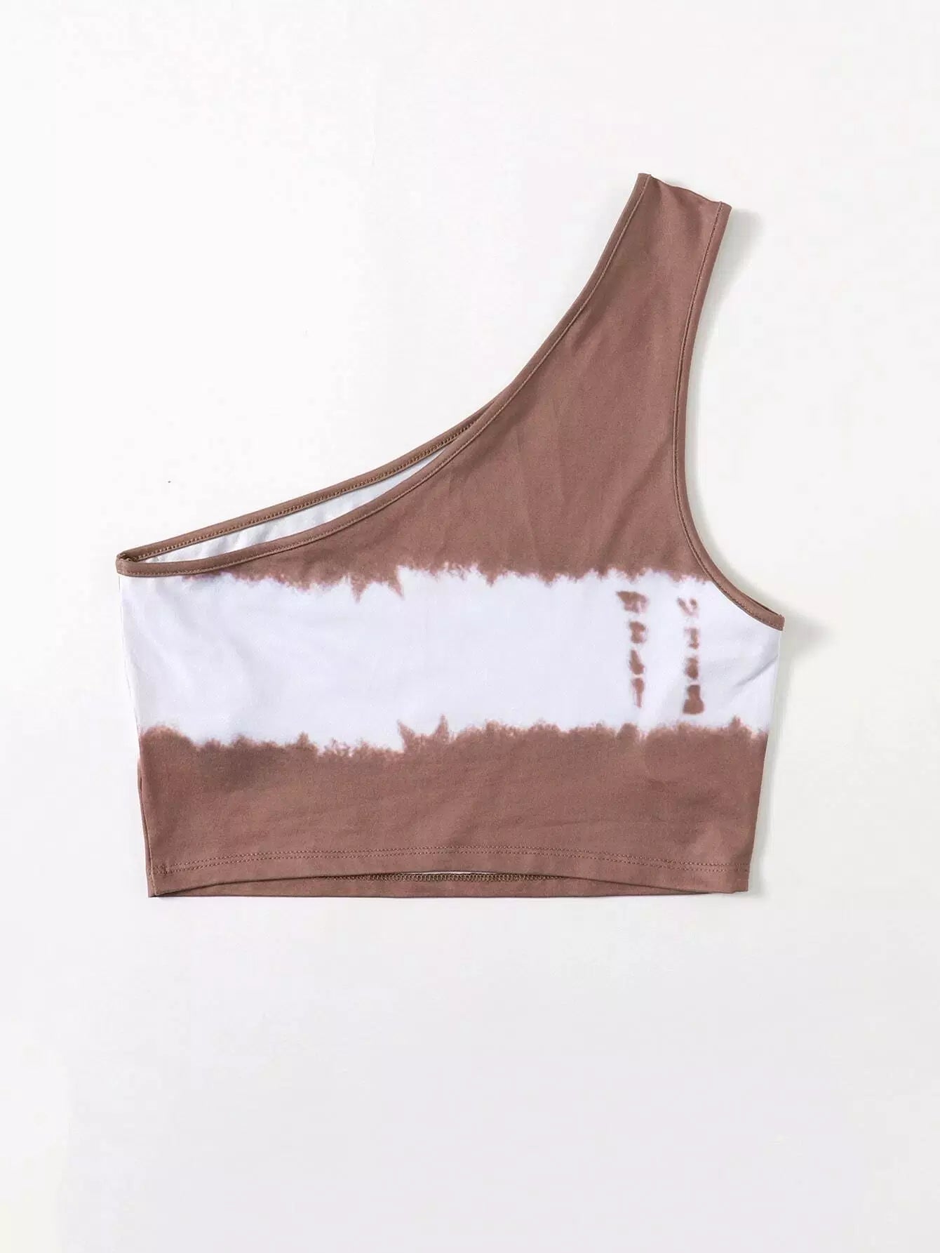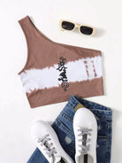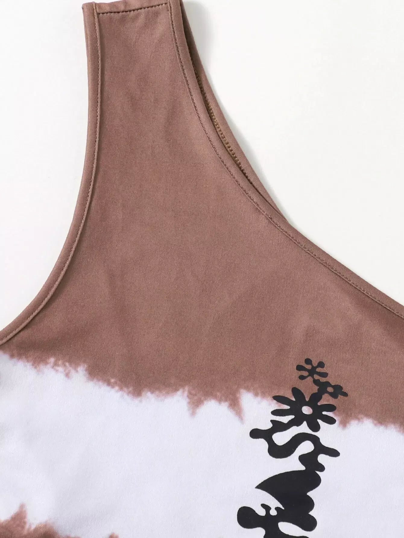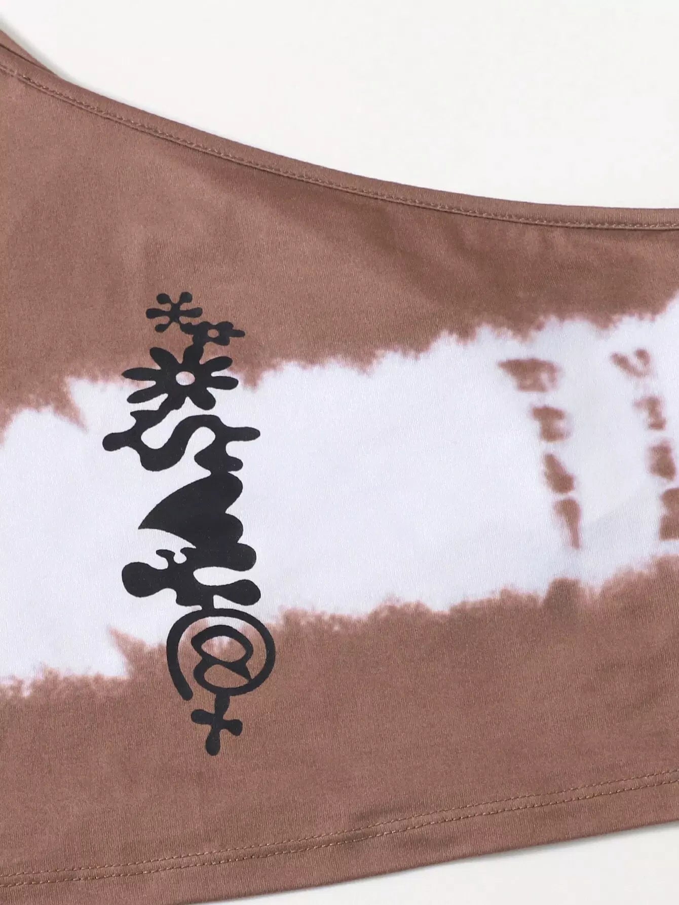 بلوزة بطبعة جرافيك بكتف واحد مطبوع عليها ربطة عنق مصبوغة