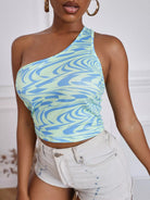 بلوزة بطبعة رخامية بكتف واحد مطبوعة بالرخام