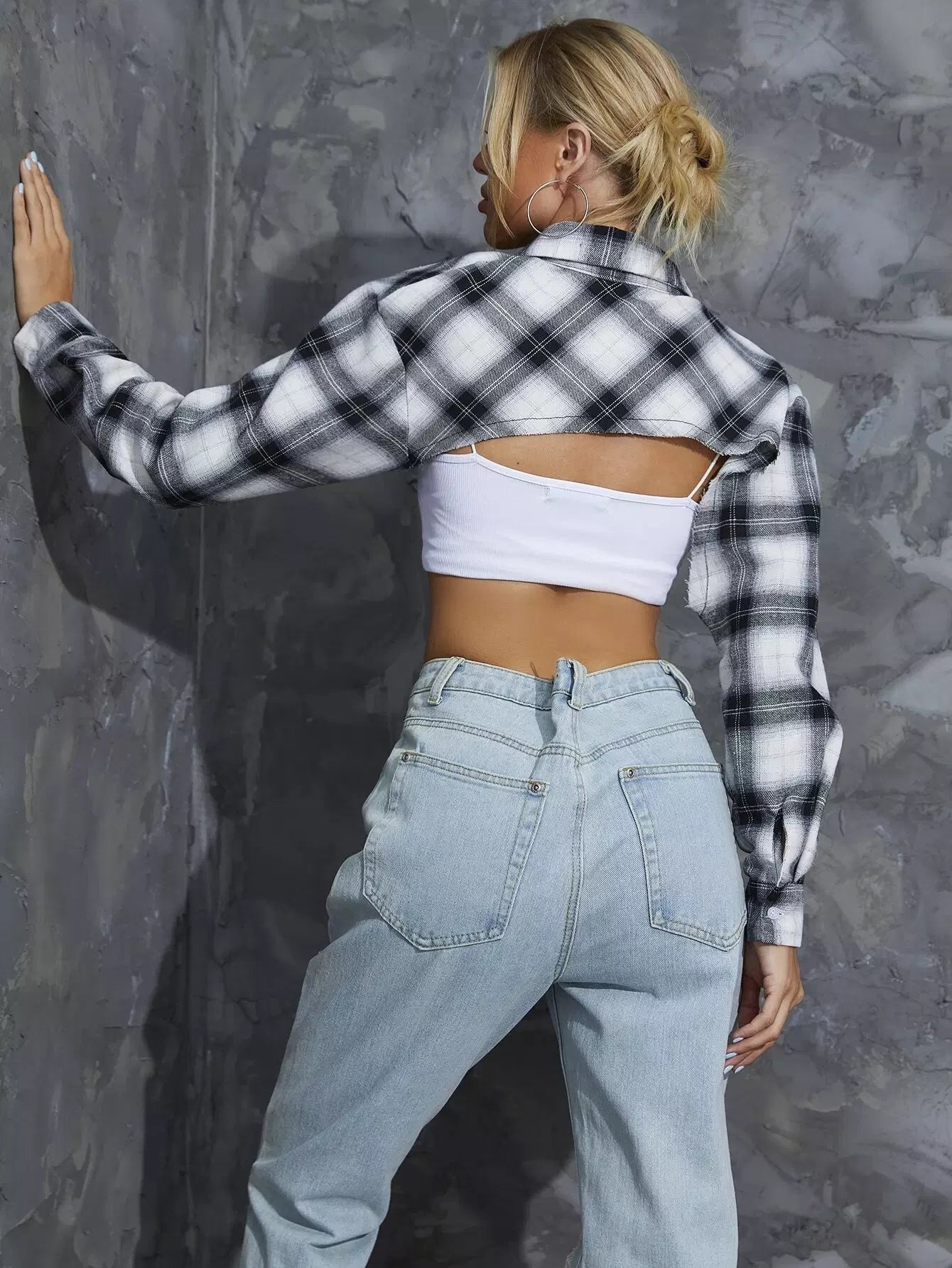 بلوزة قصيرة منقوشة سوبر كروب بدون قميص قصير