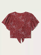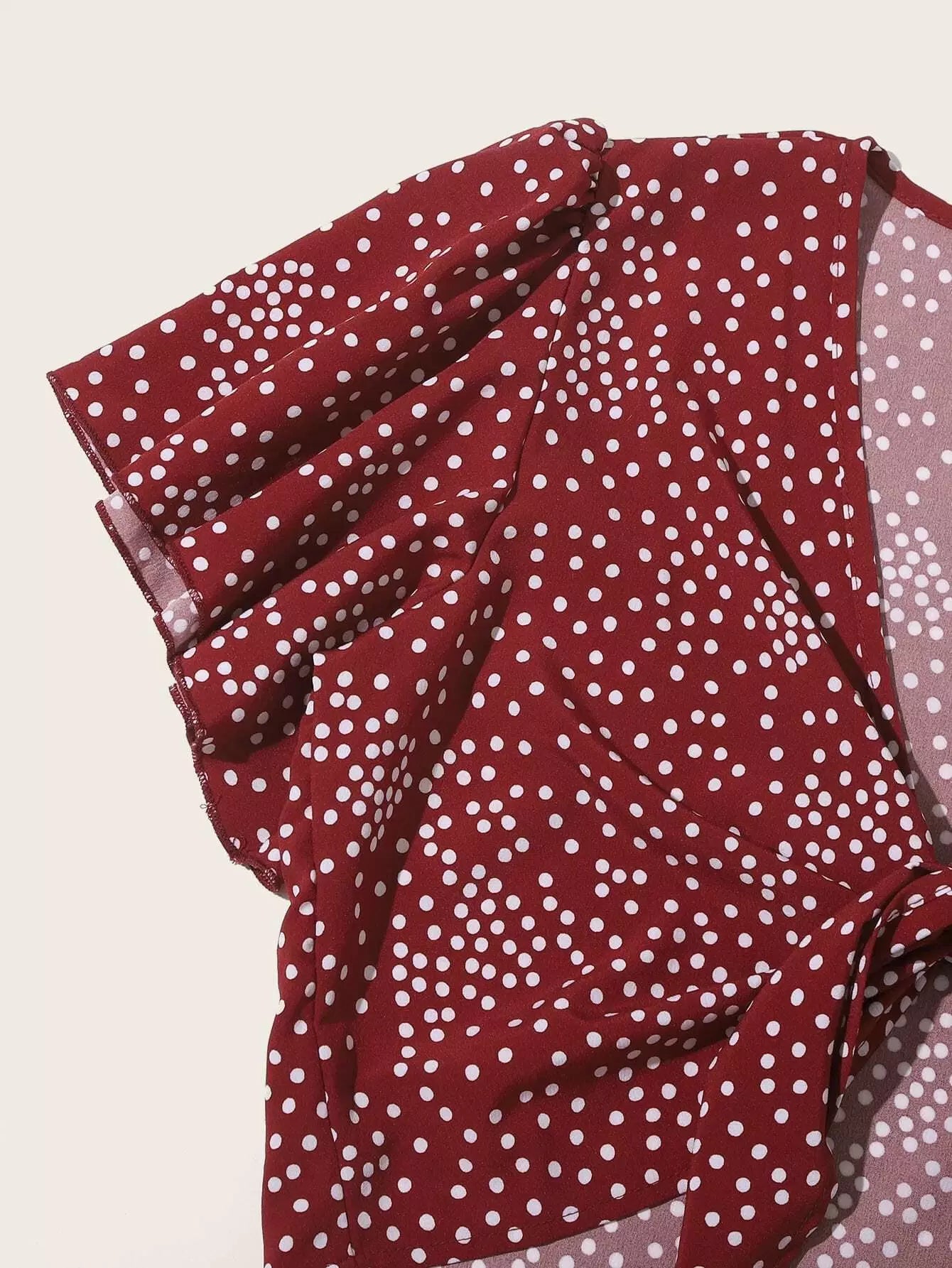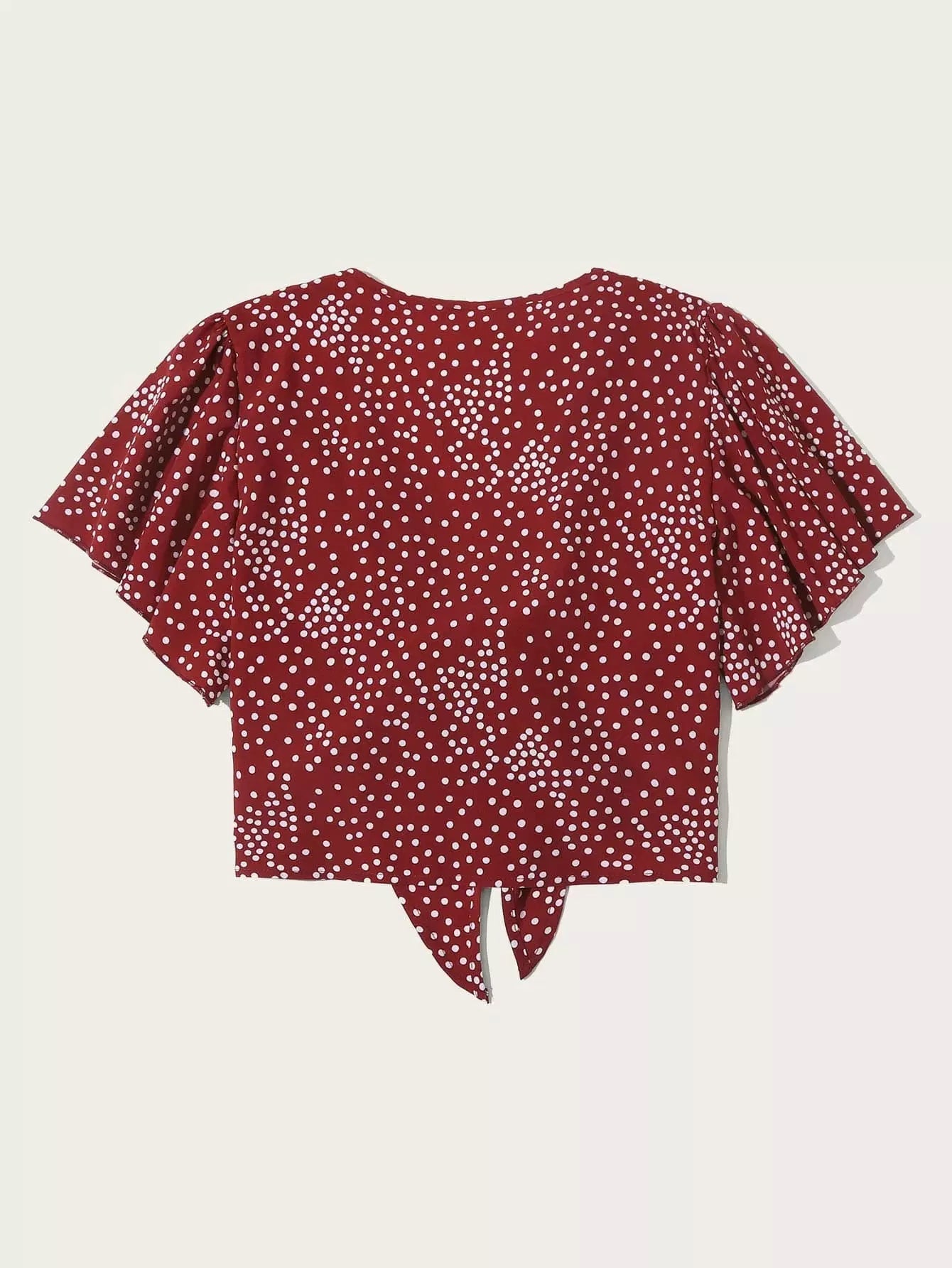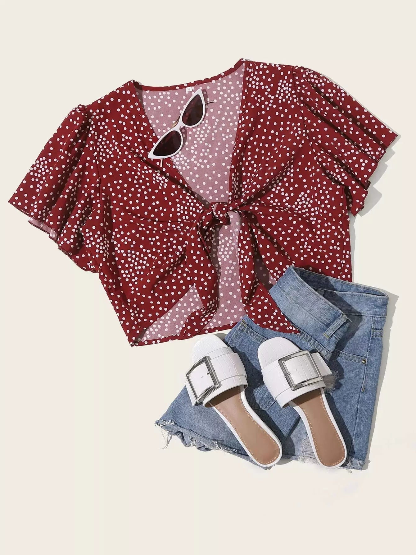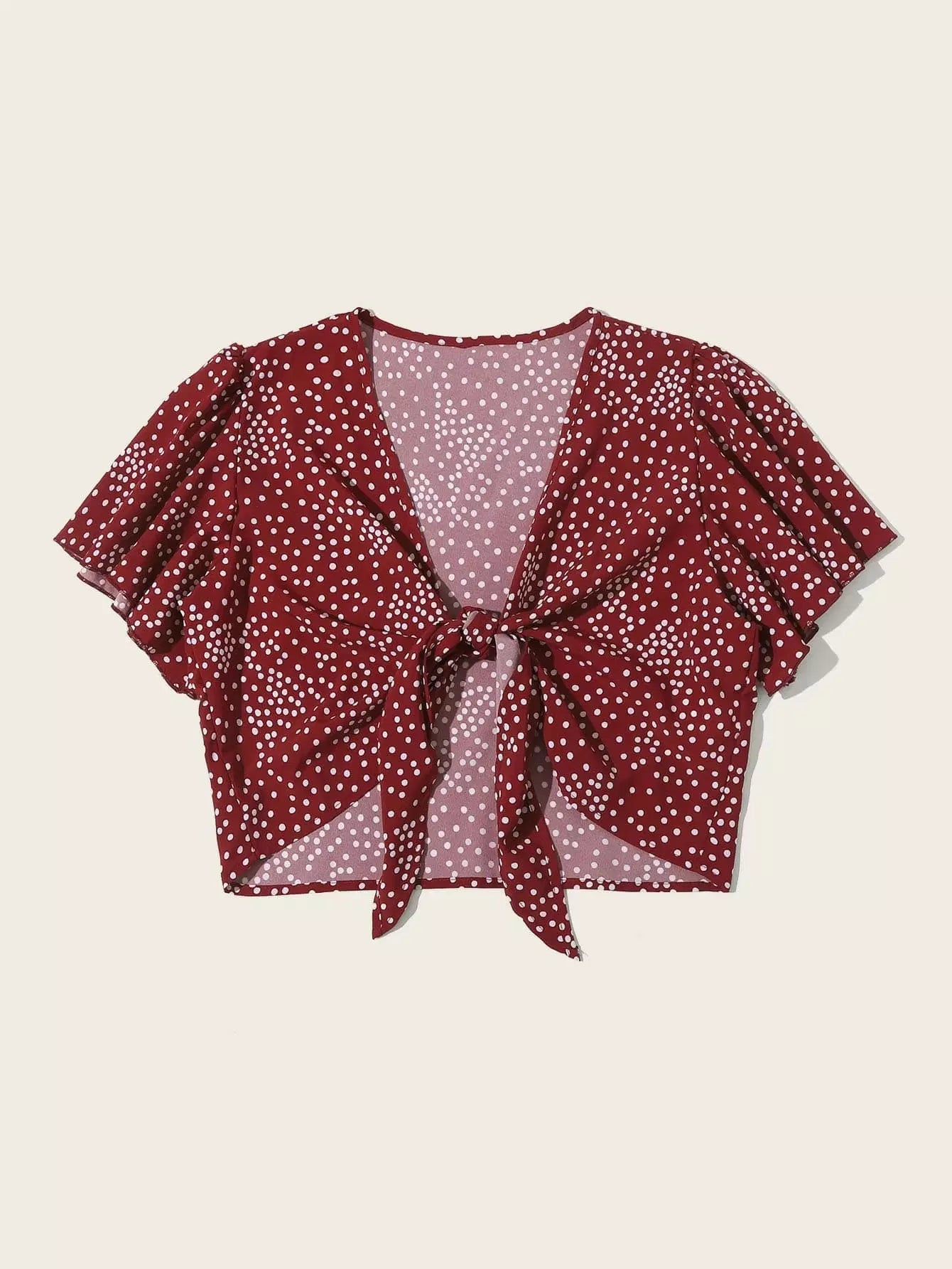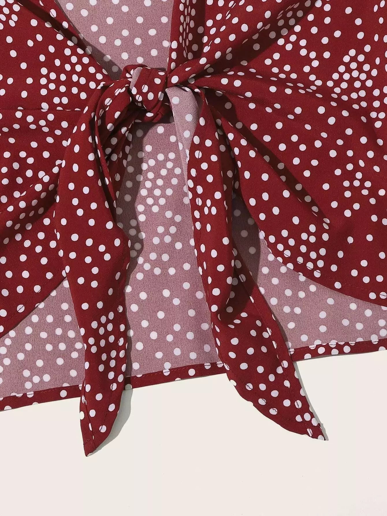 بلوزة قصيرة منقّطة منقّطة بربطة عنق أمامية
