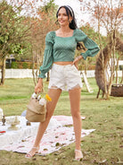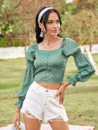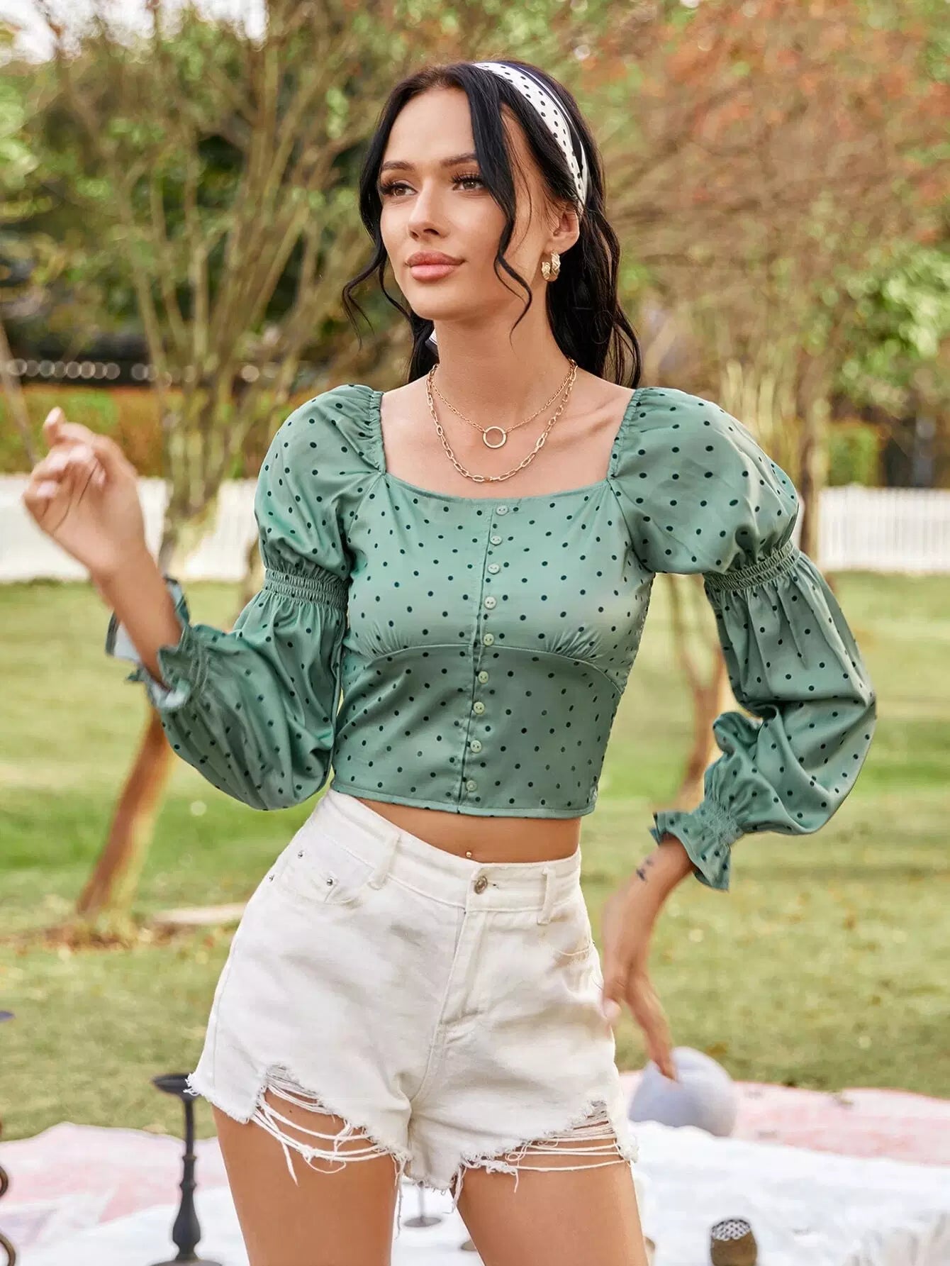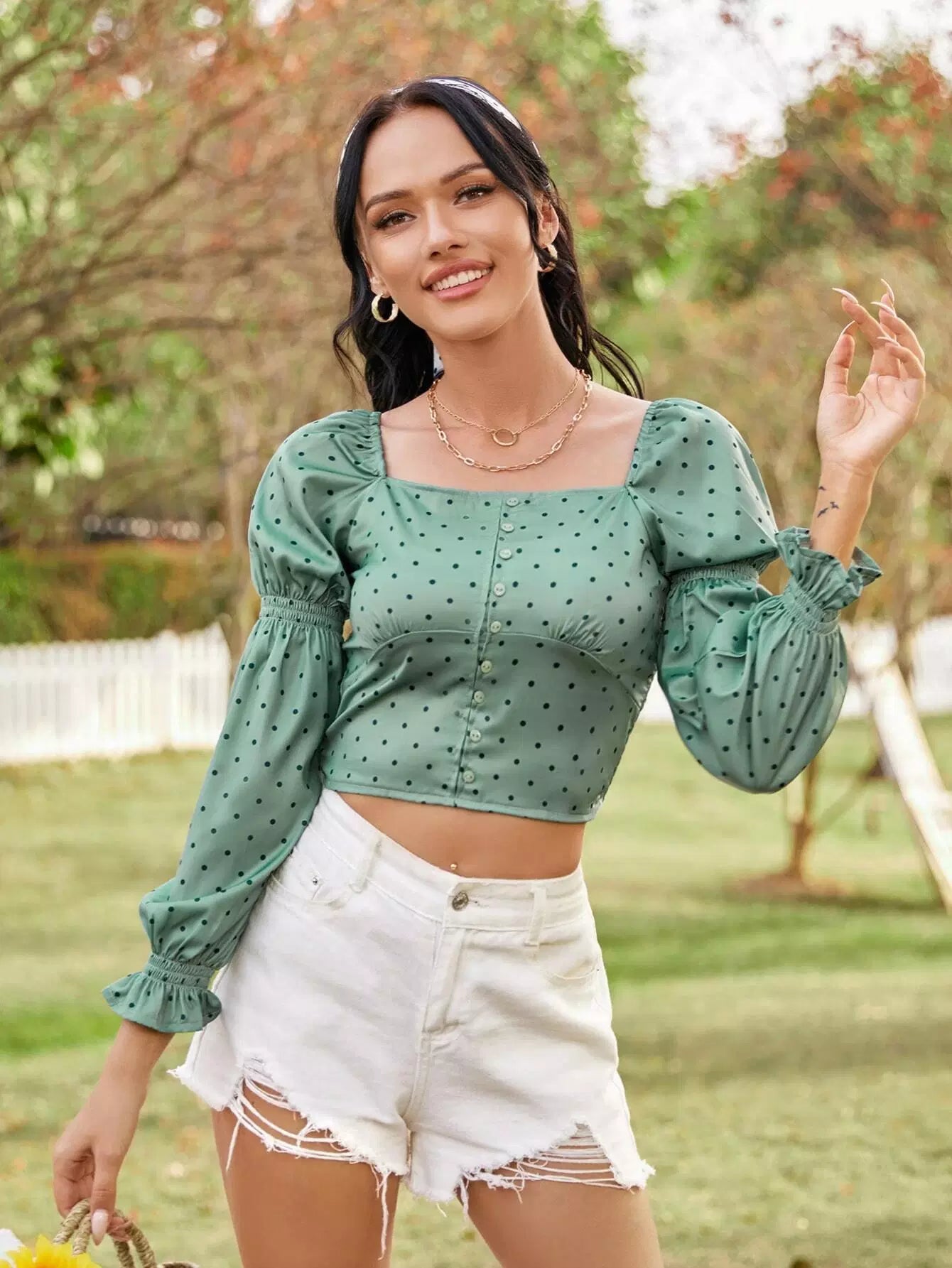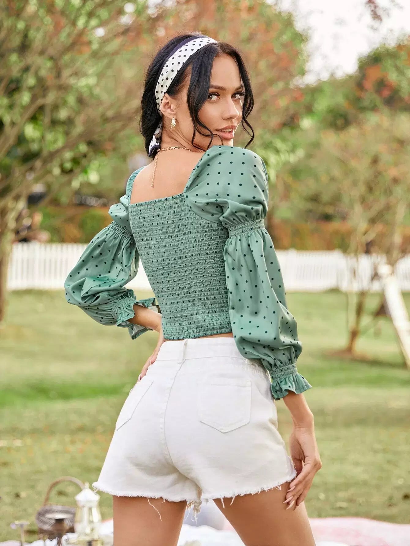 بلوزة قصيرة منقّطة منقّطة بشريط خلفي منقّط