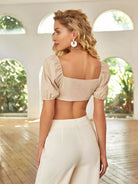 النساء - بلوزة قصيرة بأكمام منتفخة وربطة أمامية