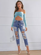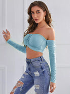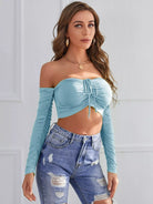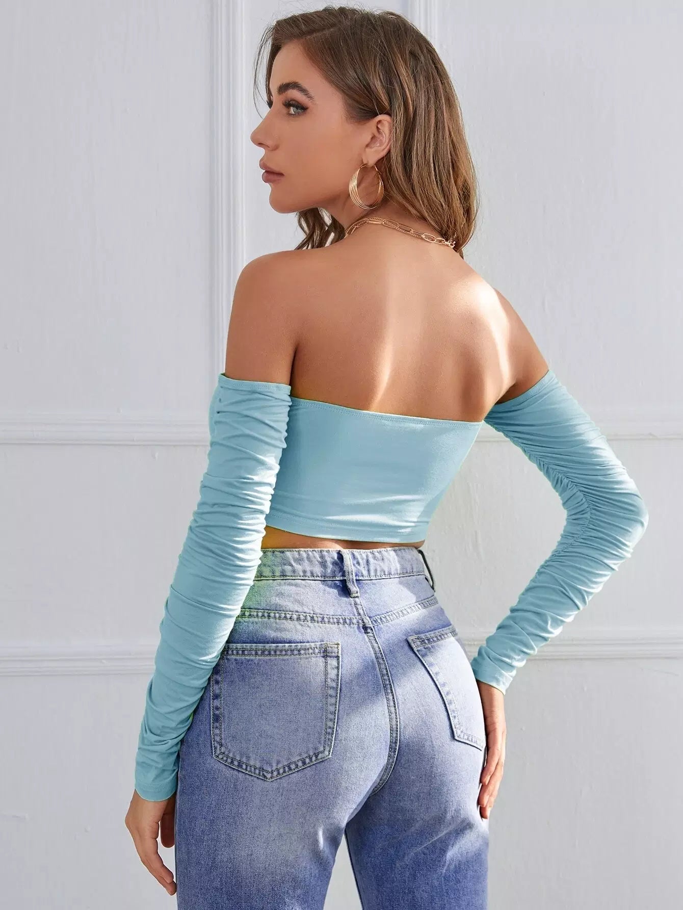 بلوزة قصيرة مكشكشة برباط على الكتف