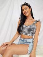 بلوزة مربعات مكشوفة الظهر مع رباط على فتحة الذراع