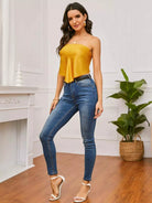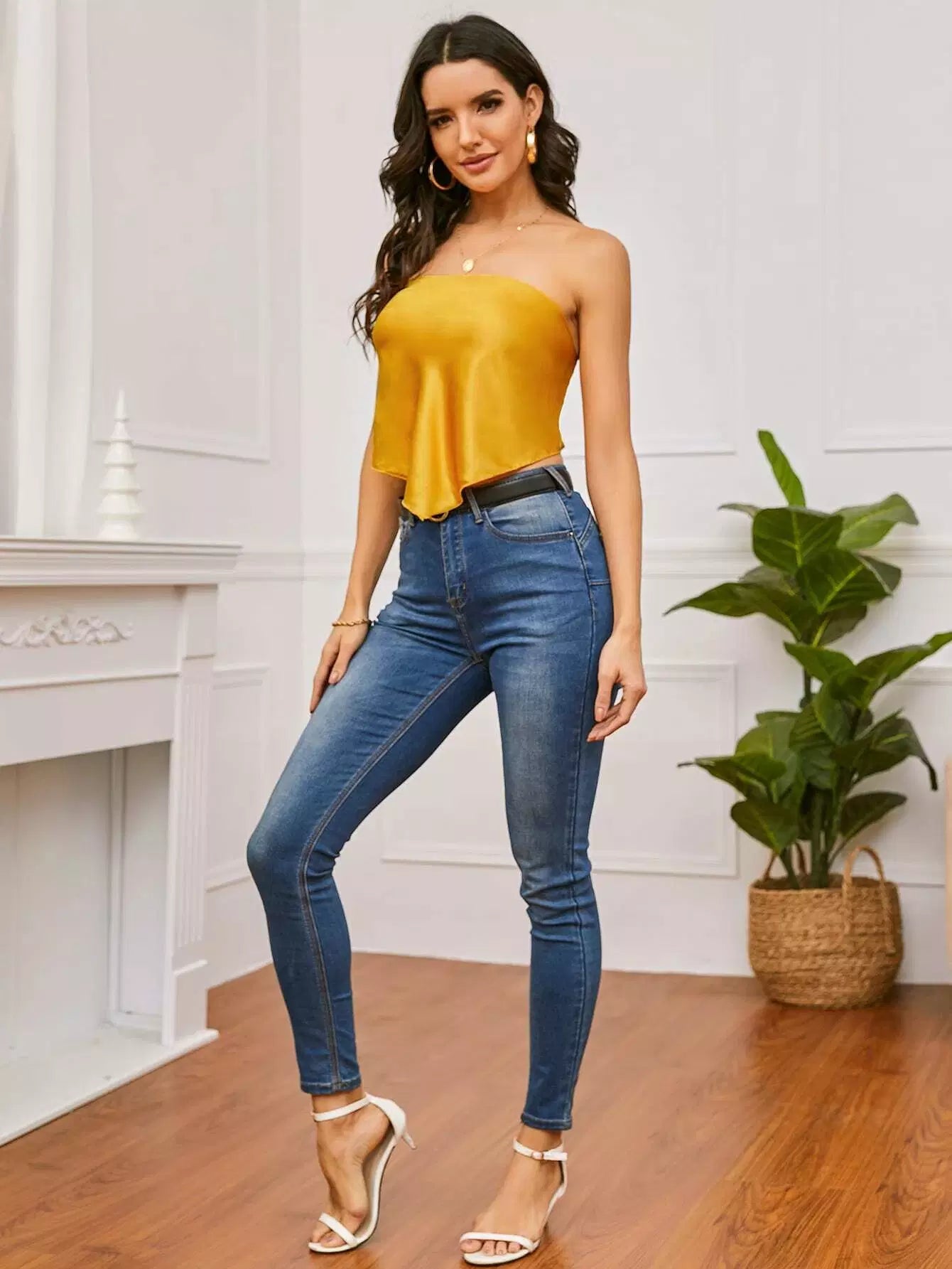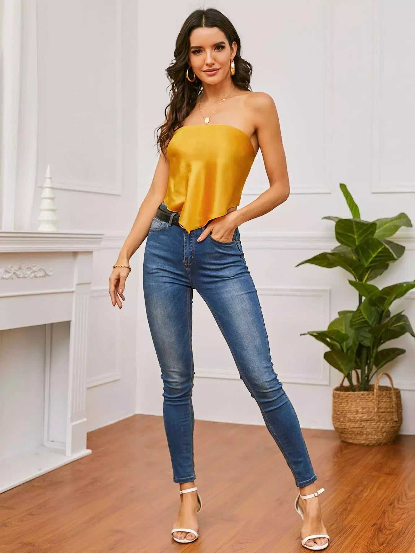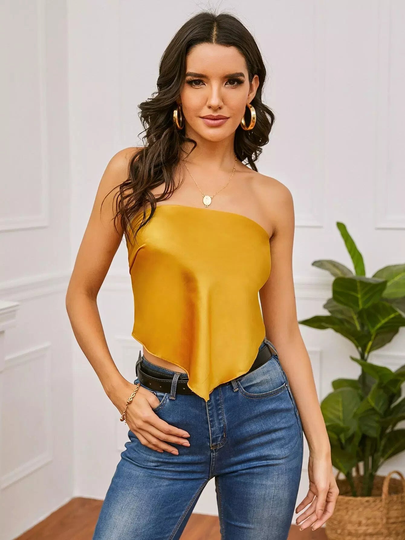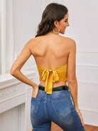 بلوزة من الساتان برباط من الساتان برباط من الخلف مرتفع منخفض