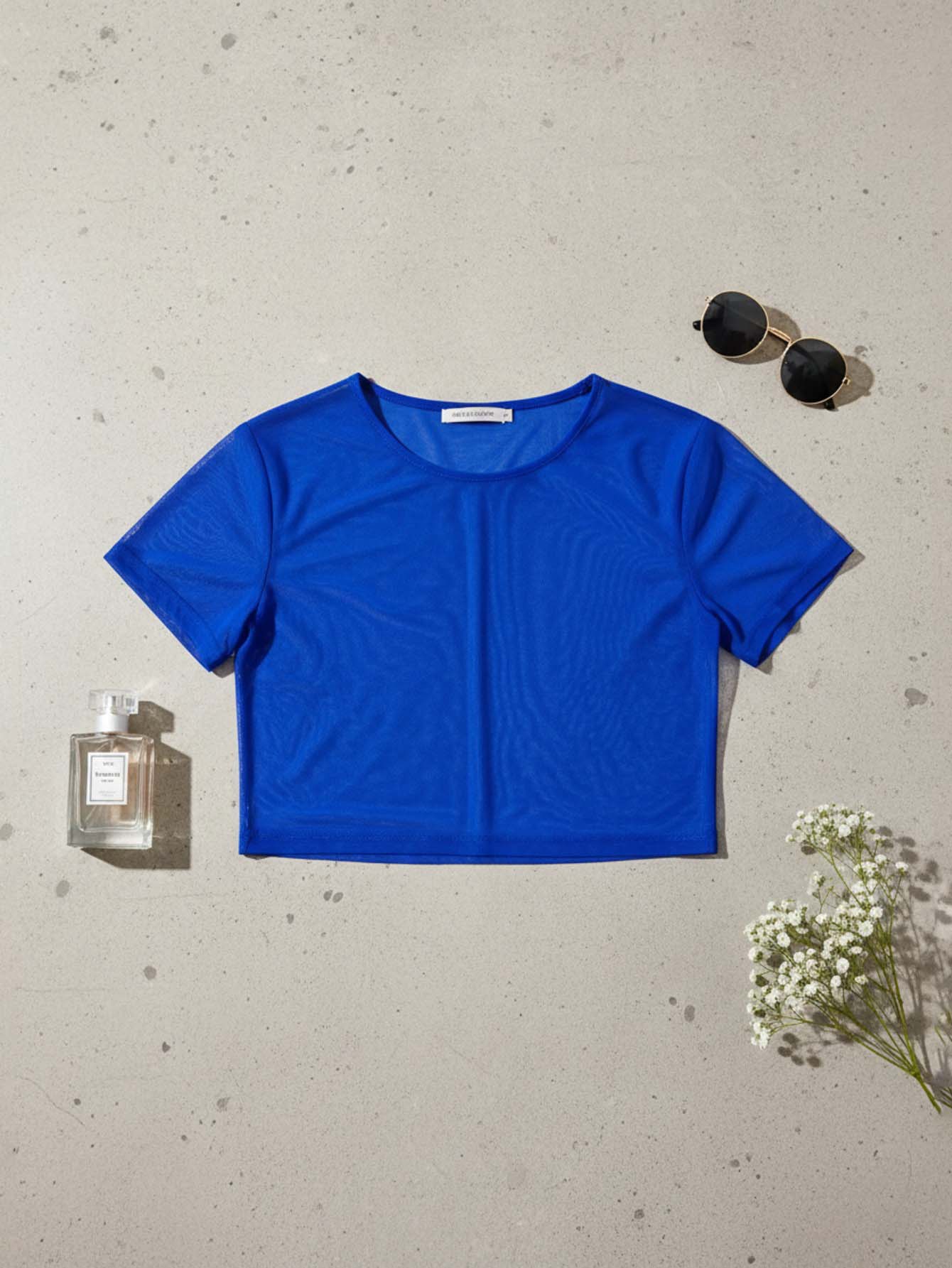 توب قصير من القماش الشبكي الشفاف بدون حمالة صدر