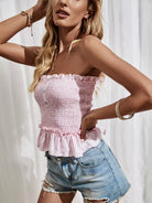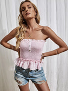 تي شيرد بحافة مكشكشة مكشكشة أنيقة