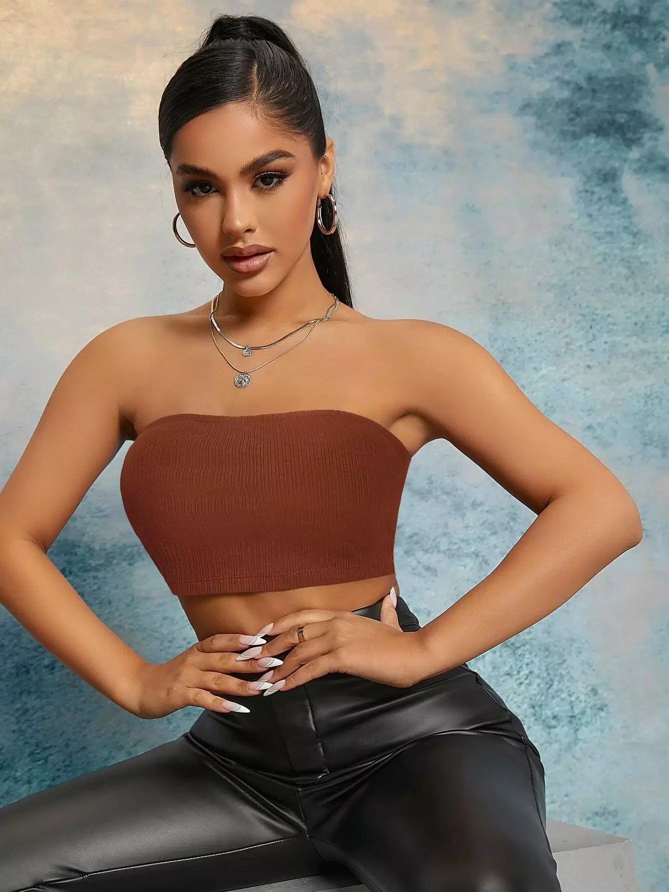 توب أنبوبي من نسيج مضلع سادة