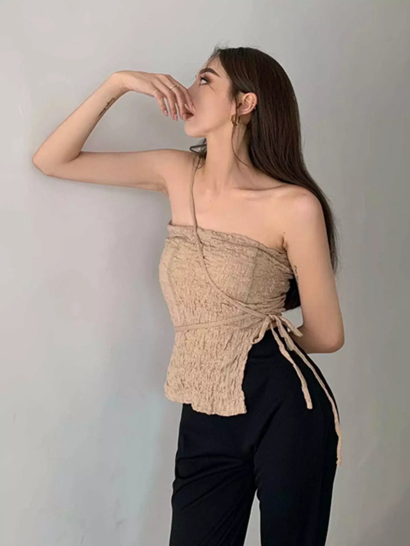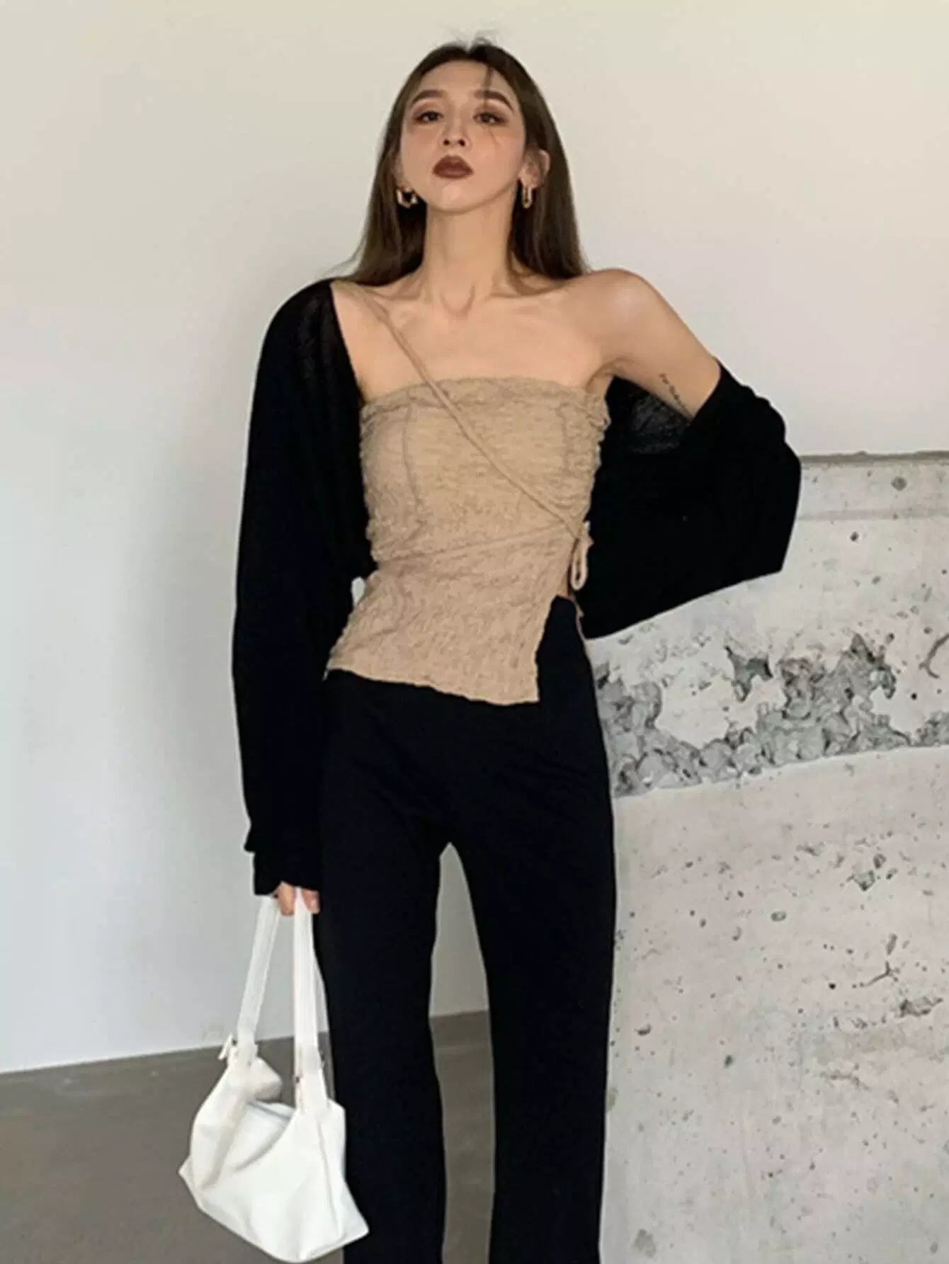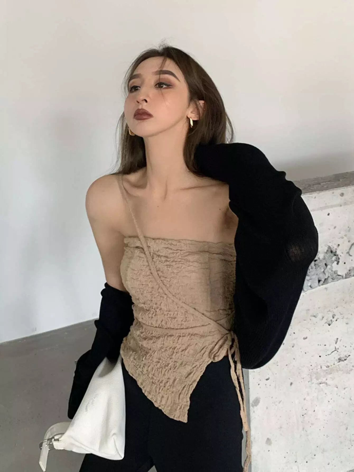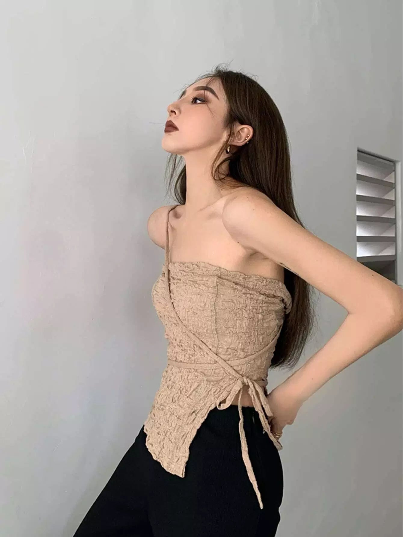 بلوزة سادة بحافة مشقوقة بحوافها من دون أكمام