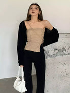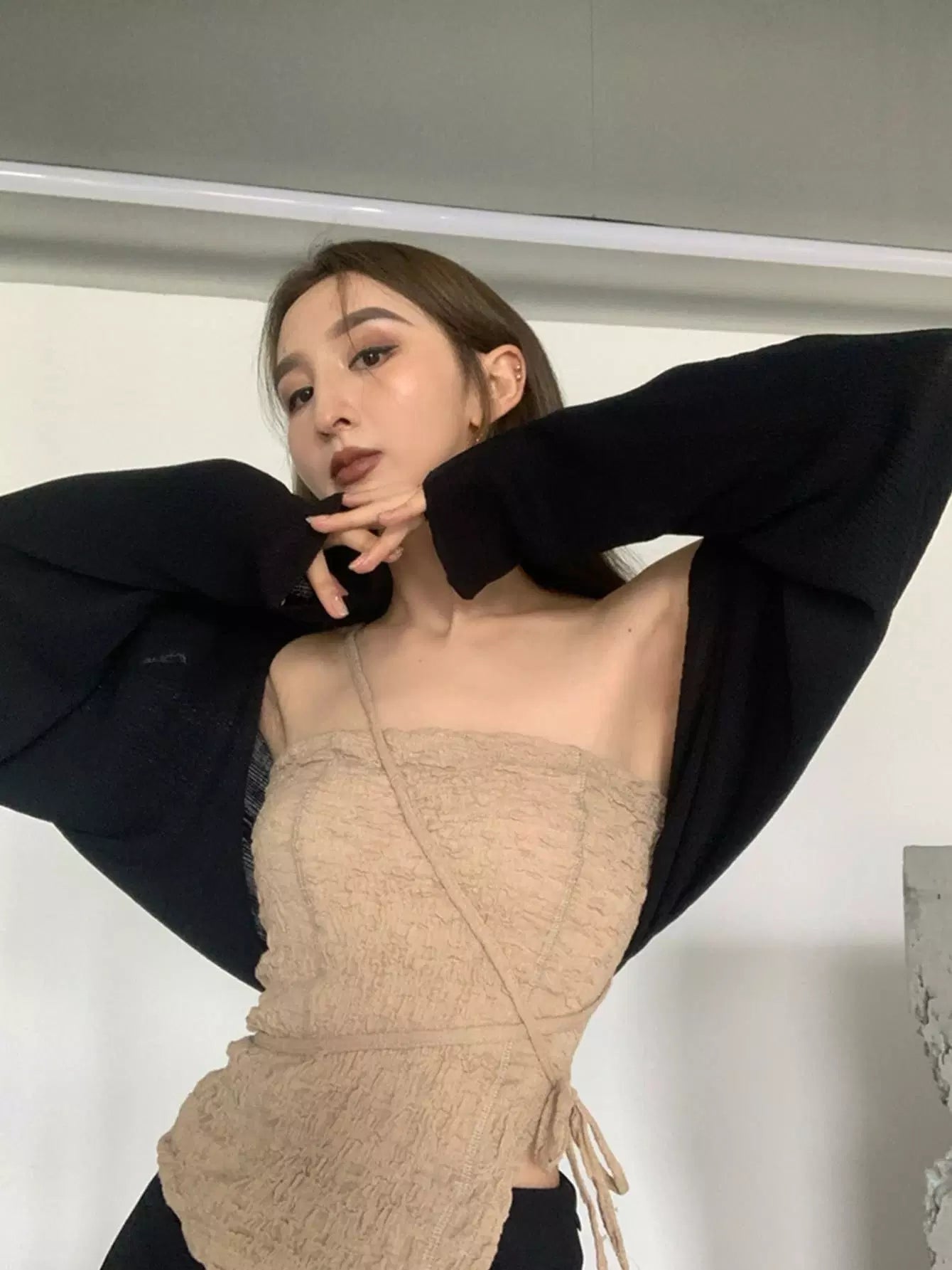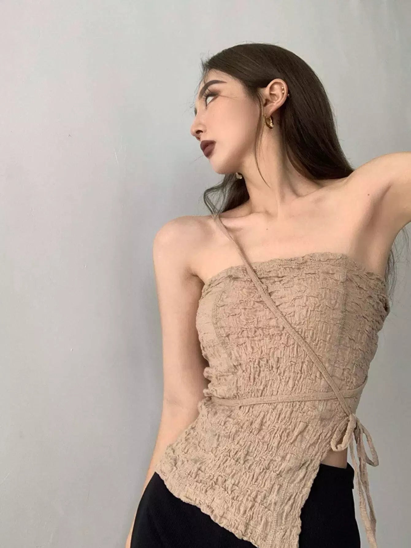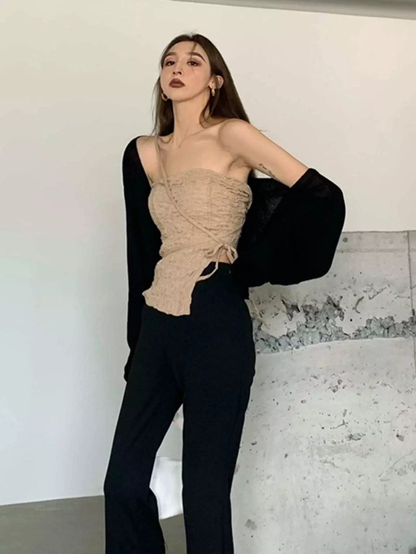 بلوزة سادة بحافة مشقوقة بحوافها من دون أكمام