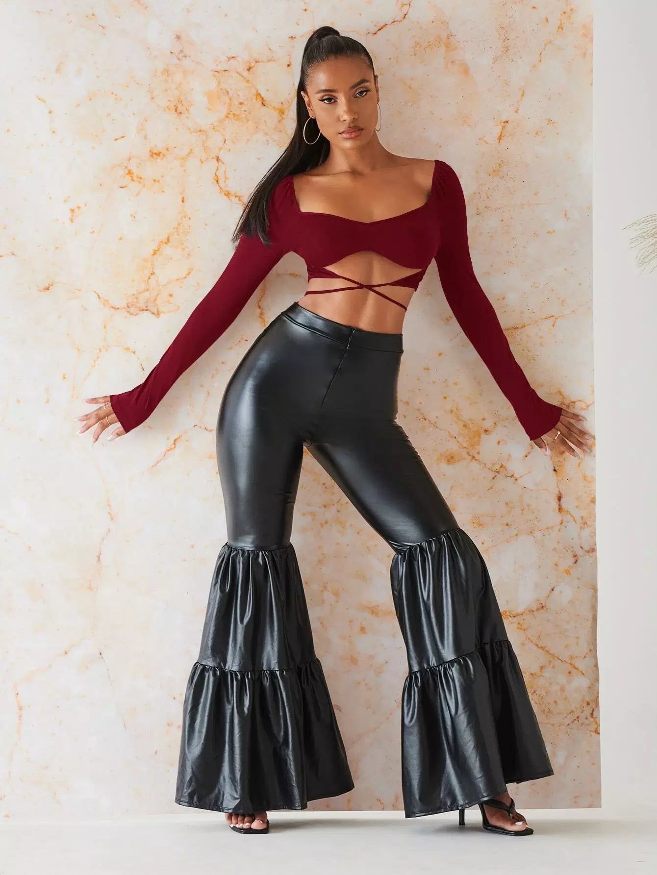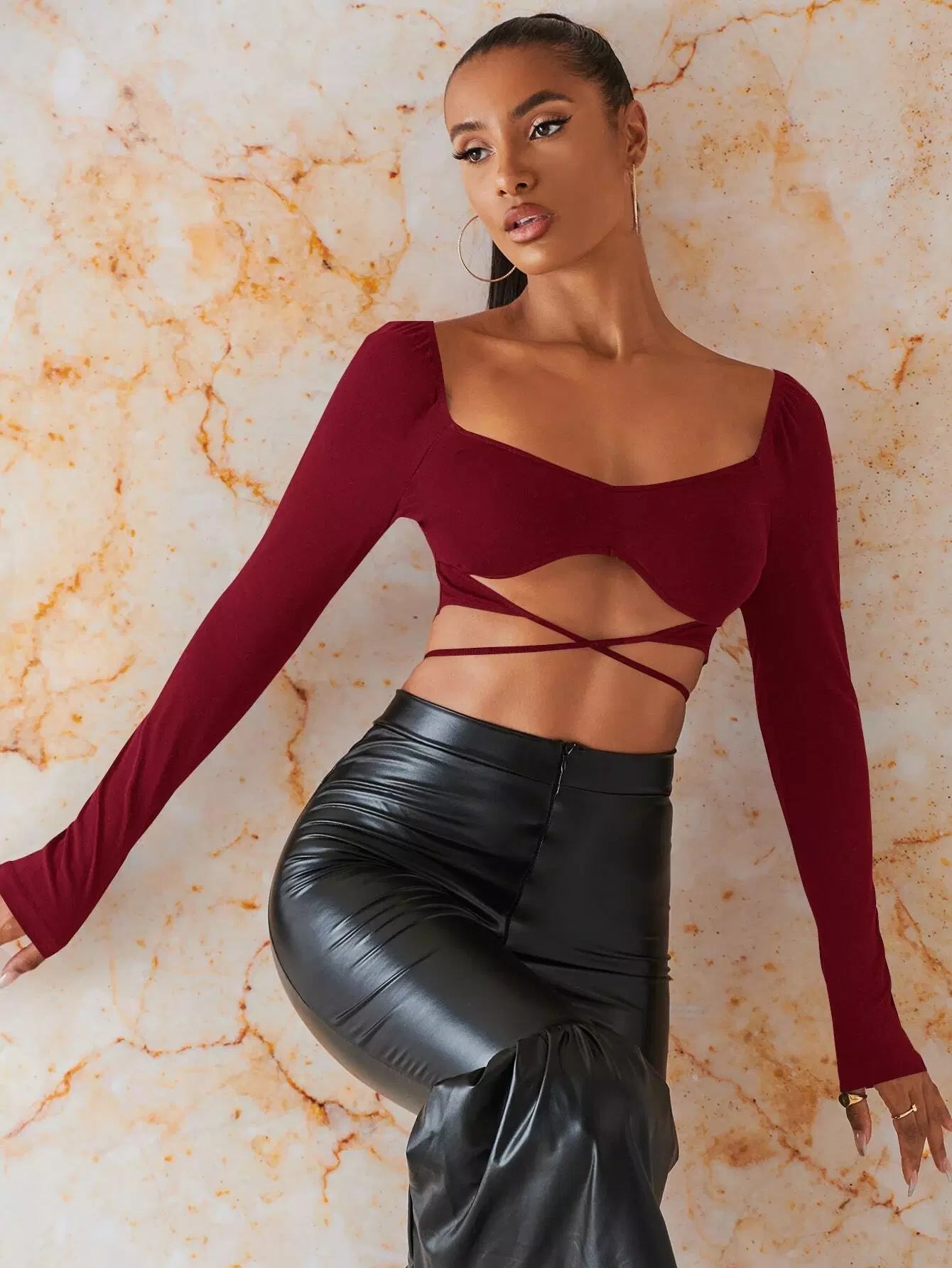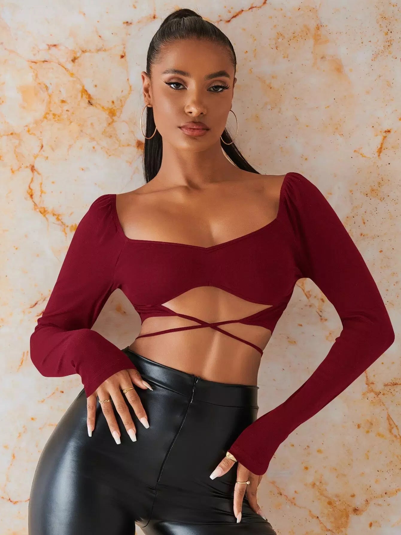 بلوزة قصيرة قصيرة برقبة على شكل ربطة عنق حلوة بربطة عنق على الظهر