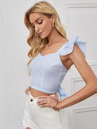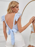 بلوزة بأكمام مكشكشة بربطة عنق بدون أكمام مكشكشة