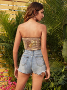 بلوزة قصيرة مطبوعة بالكامل برباط أمامي