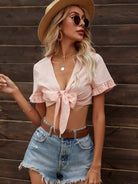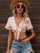 بلوزة قصيرة بأكمام منفوشة بربطة عنق أمامية