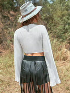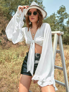 النساء - بلوزة بأكمام واسعة وأربطة أمامية