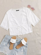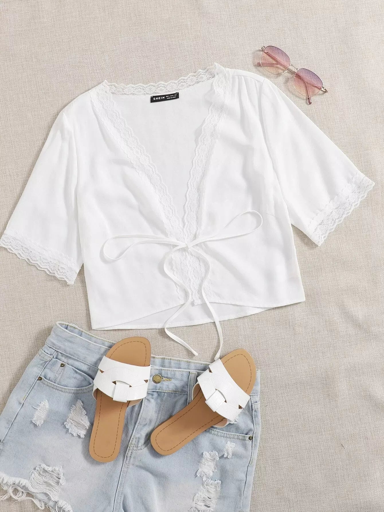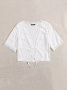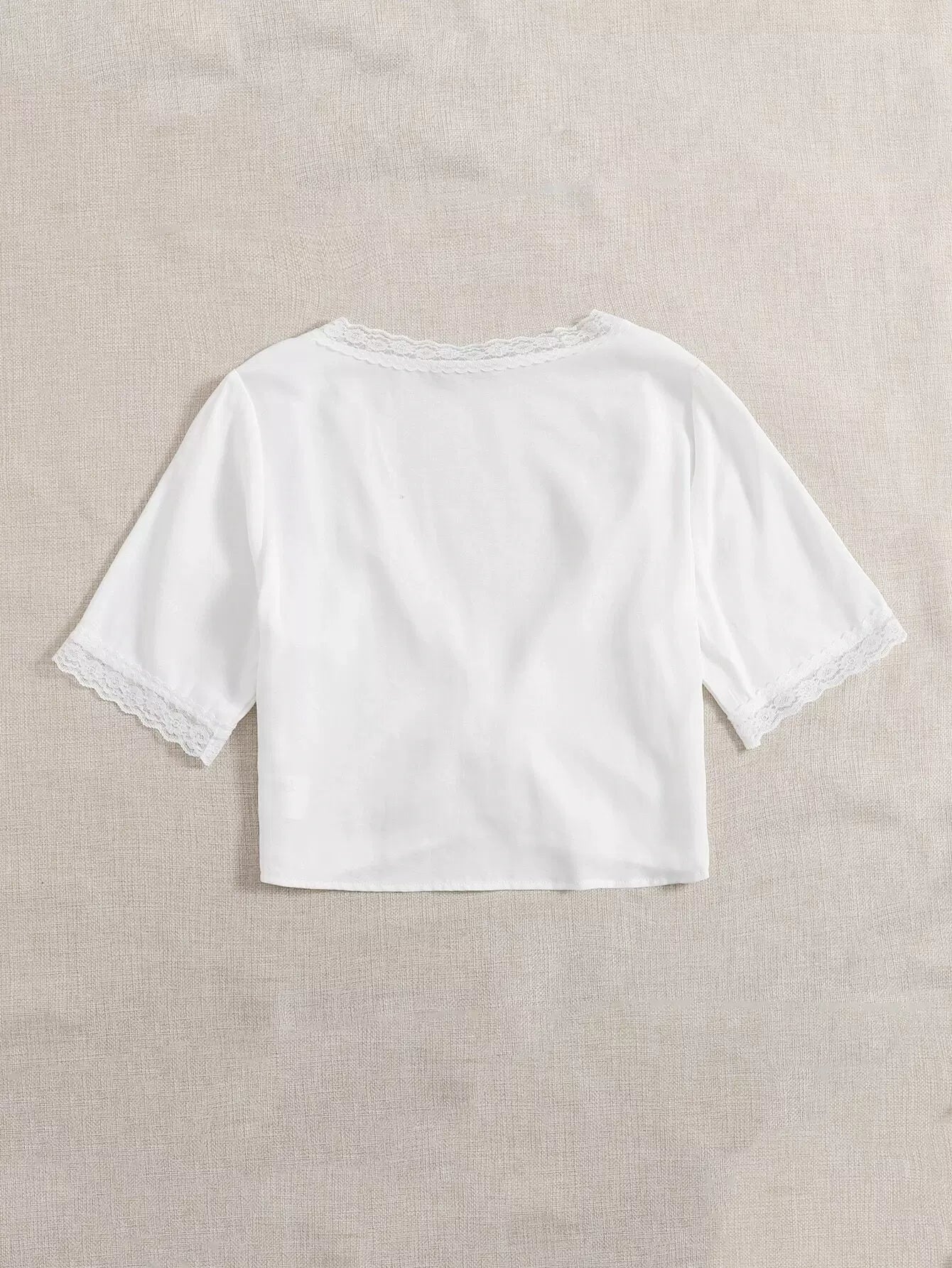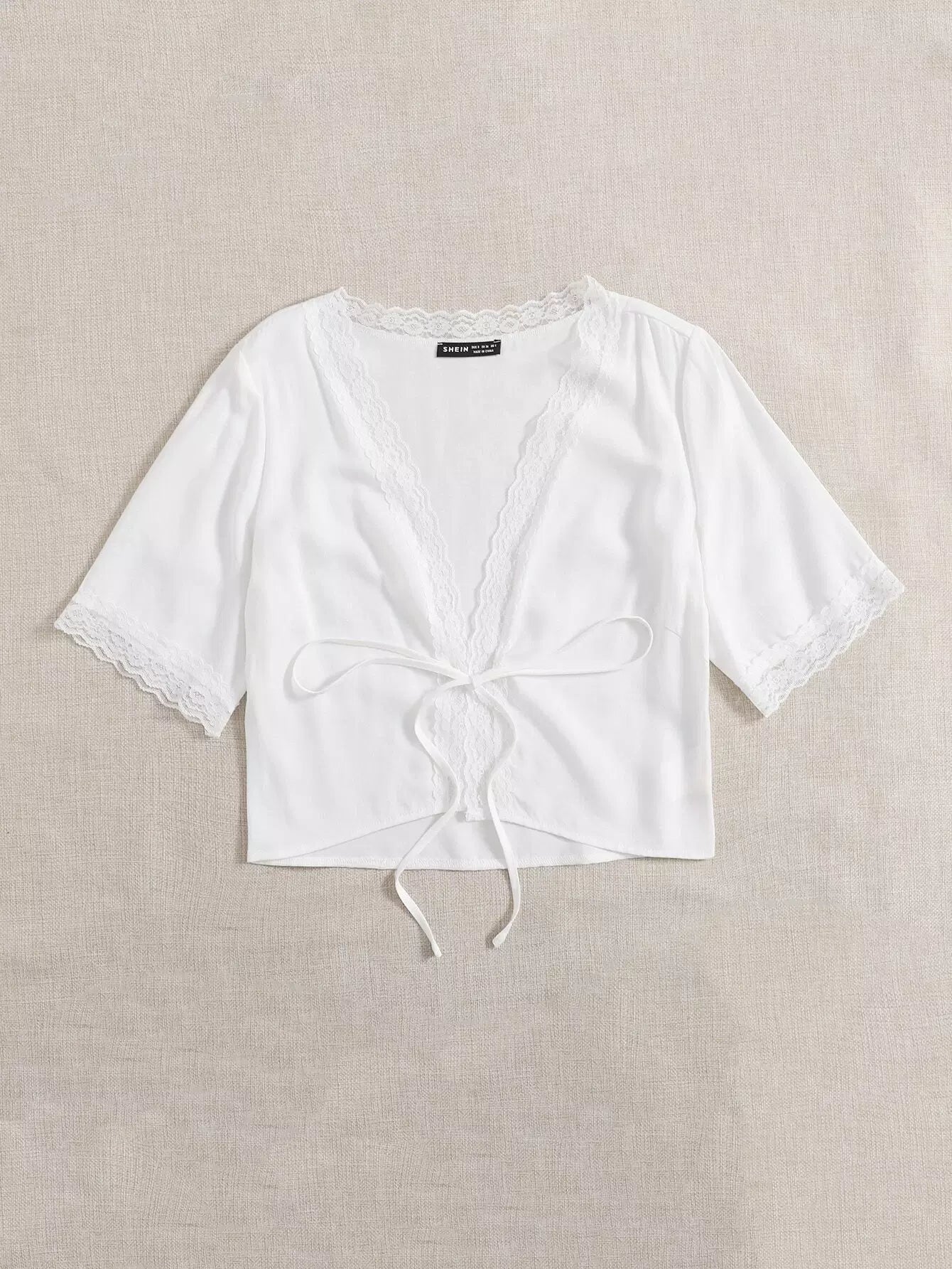 بلوزة مزينة برباط أمامي من الدانتيل