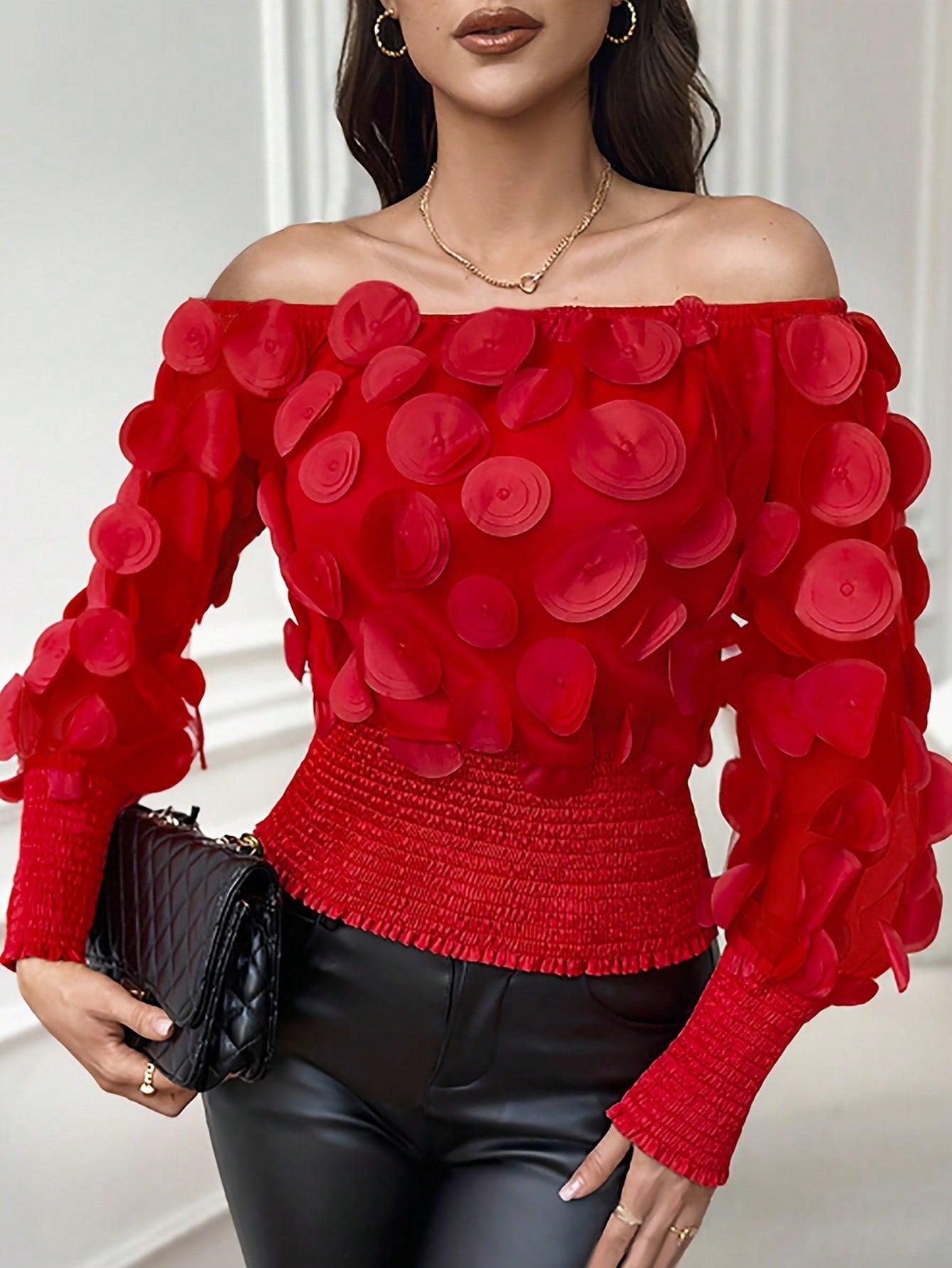 بلوزة نسائية أنيقة مكشوفة الكتفين مزينة بشبكة