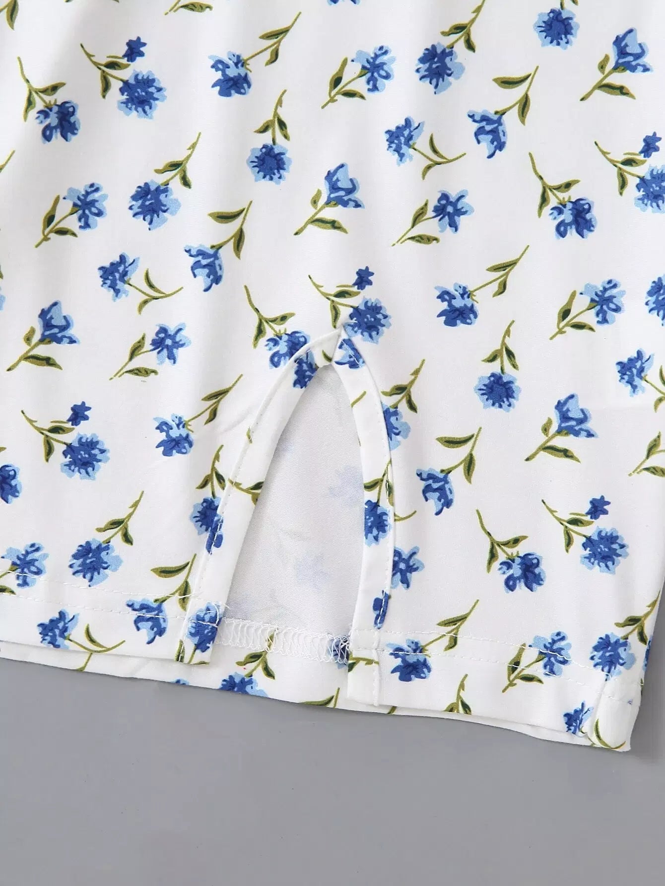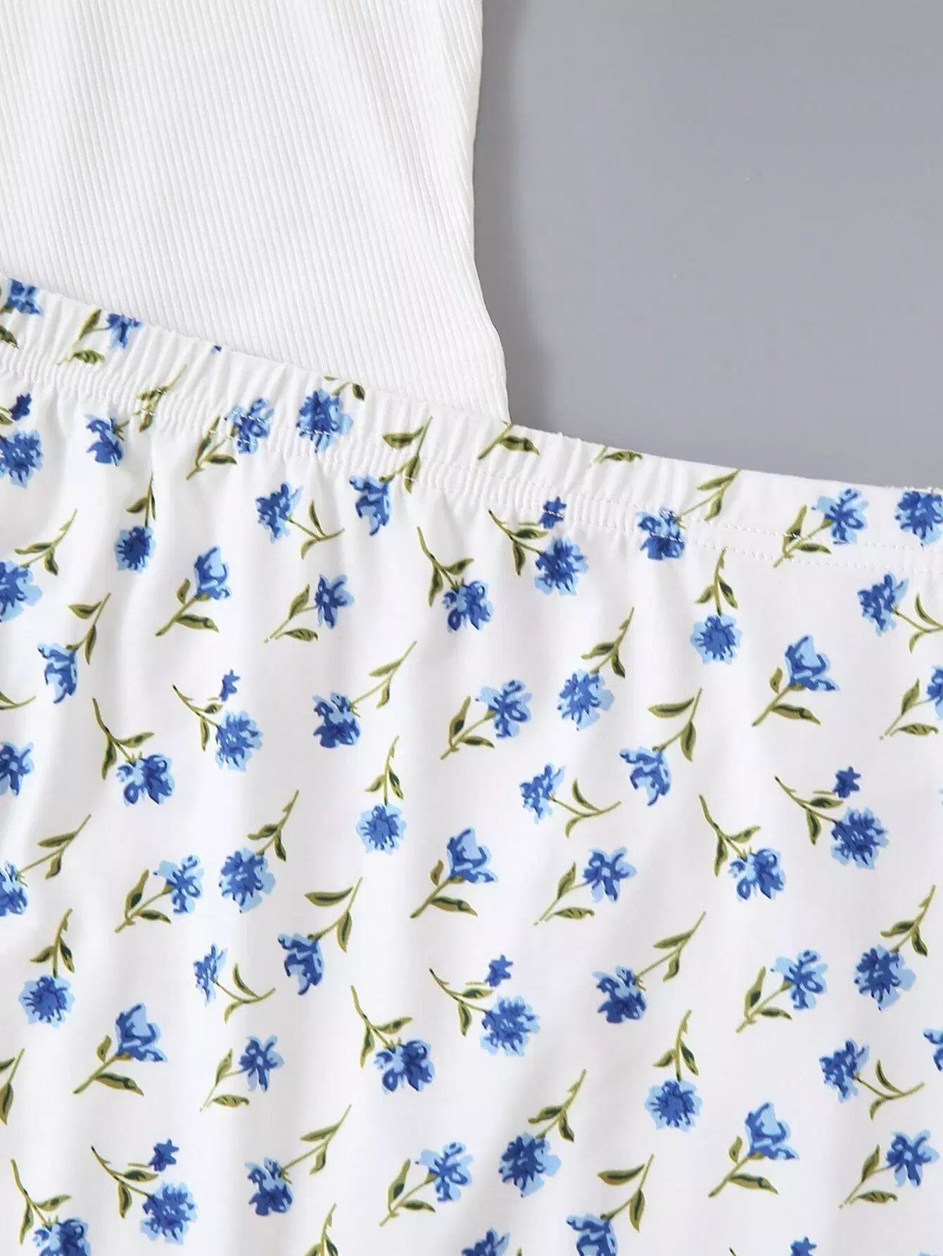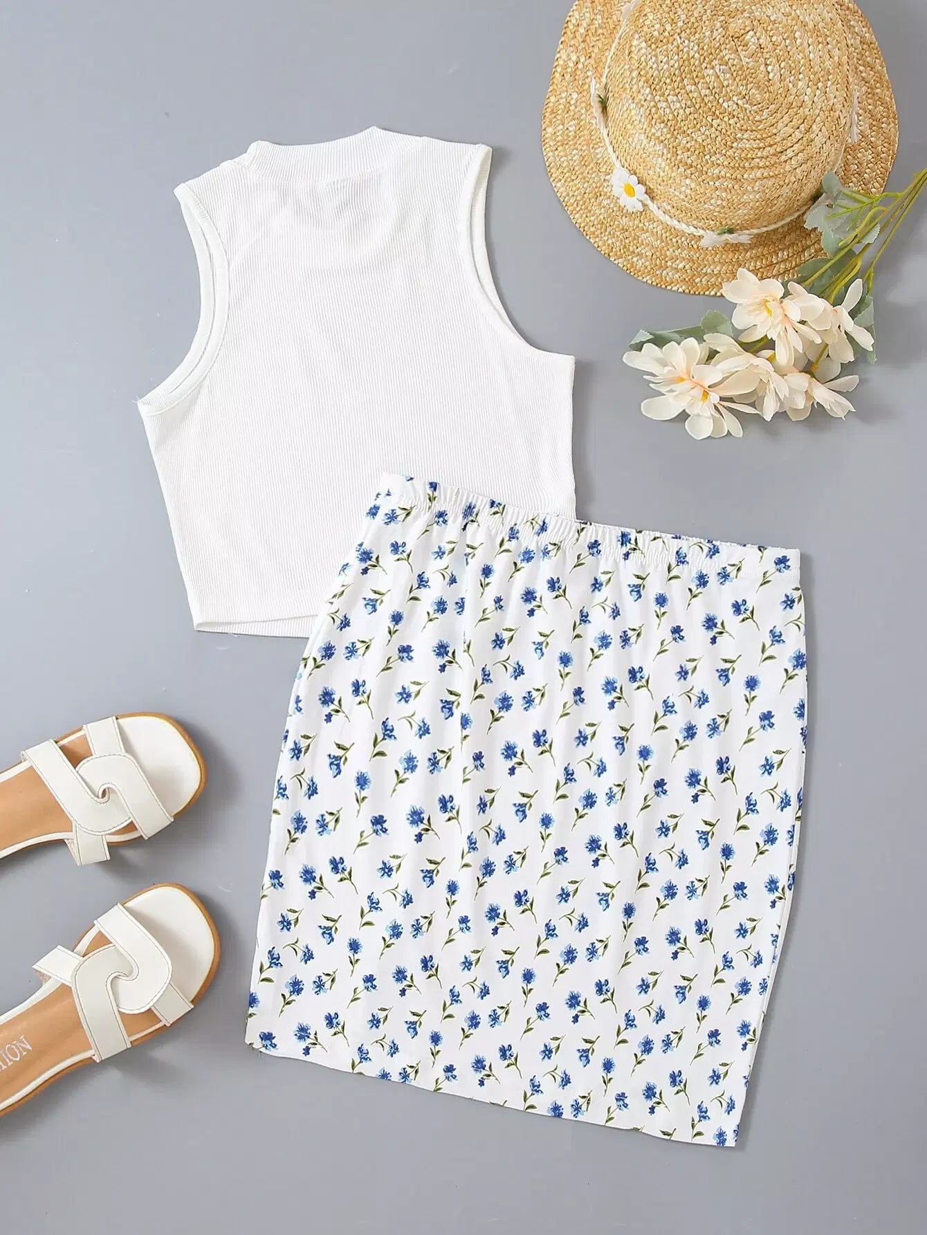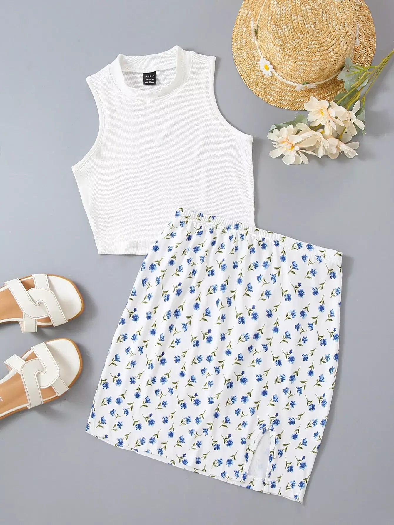 قطعة واحدة تانك توب بدون أكمام وتنورة بطبعة زهور منقسمة الحواف