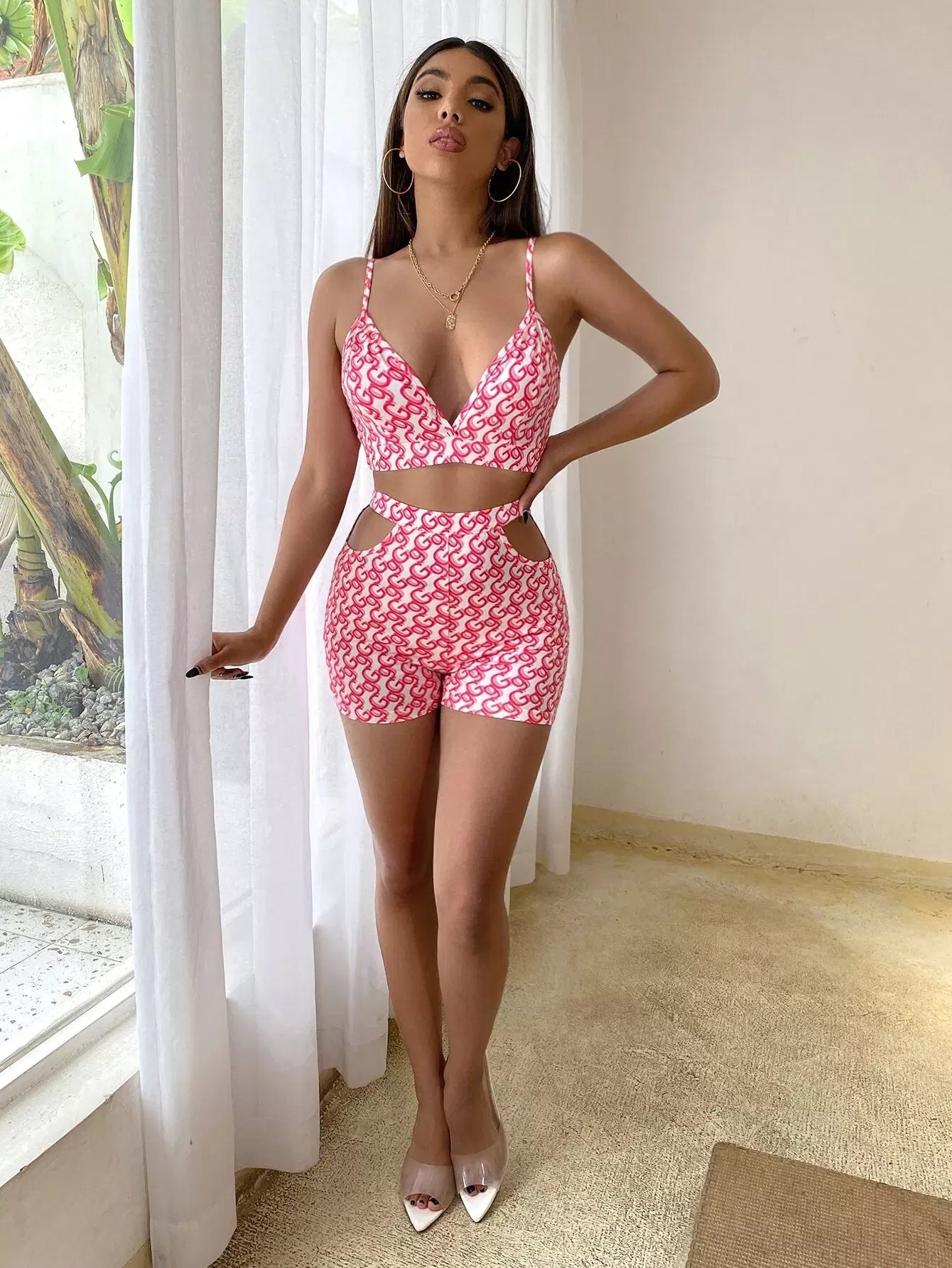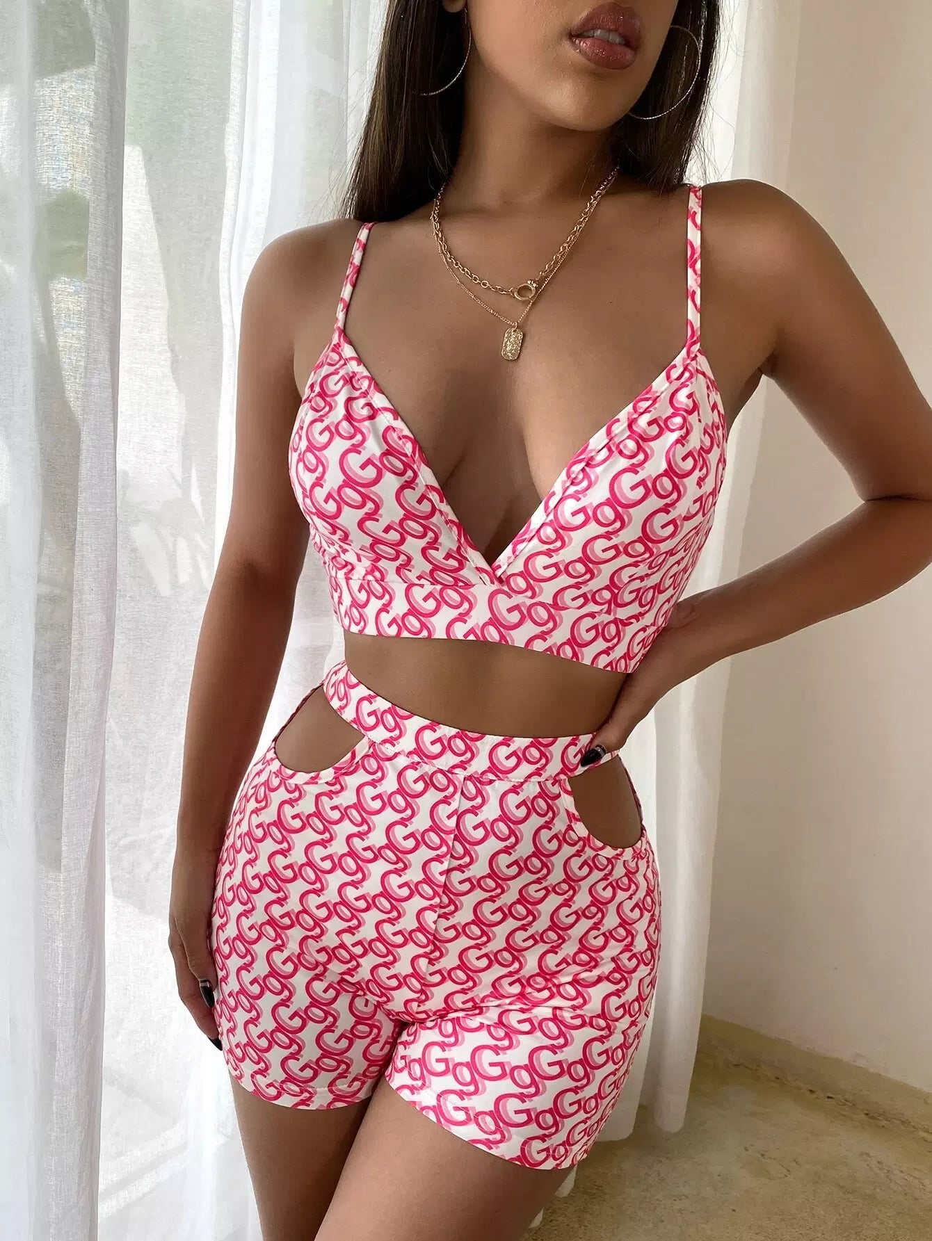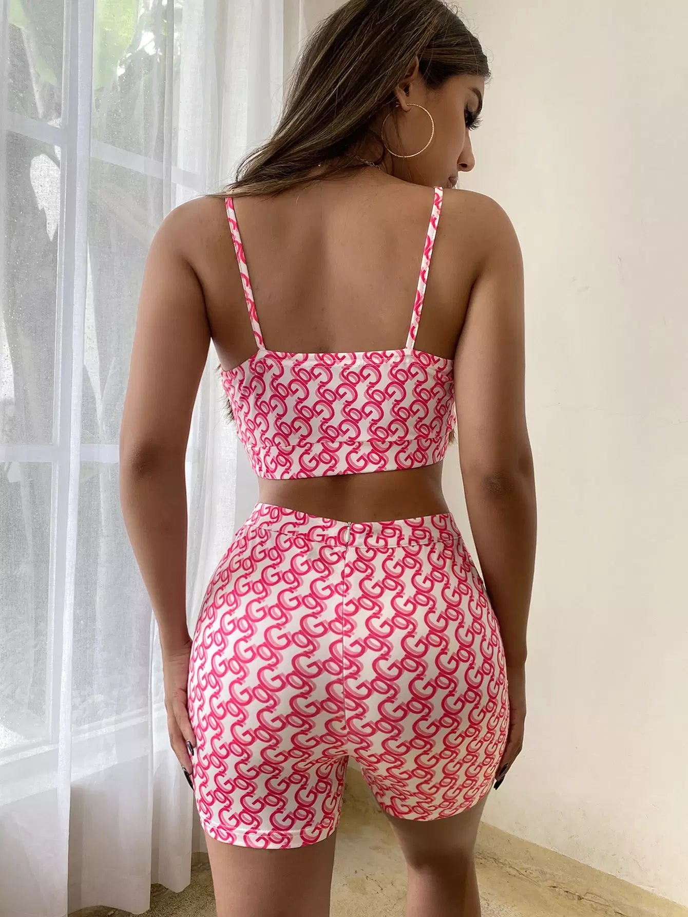 توب كوفي برسومات على شكل حرف بالكامل مع شورت قصير بقصّة قصيرة
