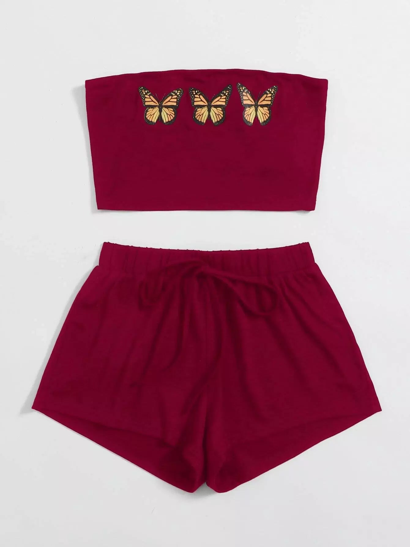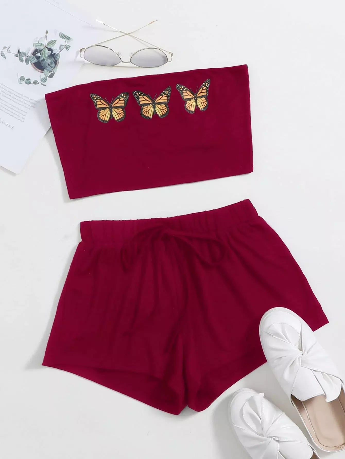 للنساء - طقم توب وشورت رياضي بطباعة فراشة