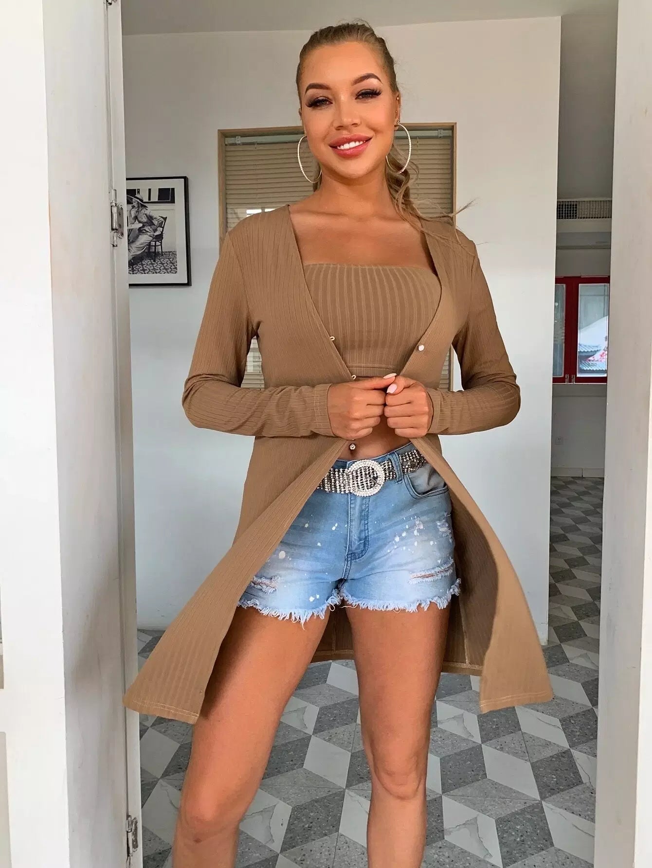 طقم معطف بتفاصيل أزرار وتي شيرت أنبوبي