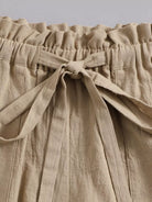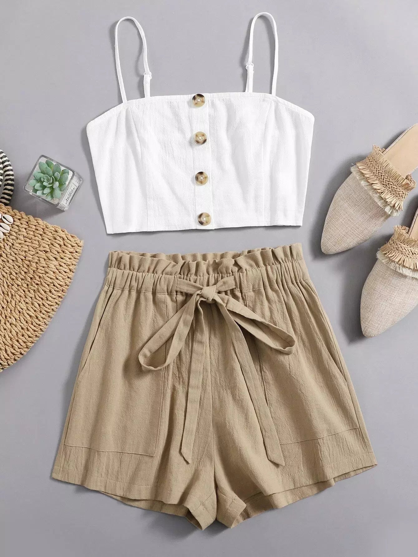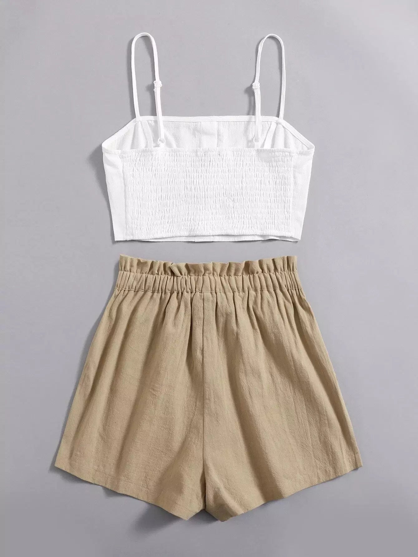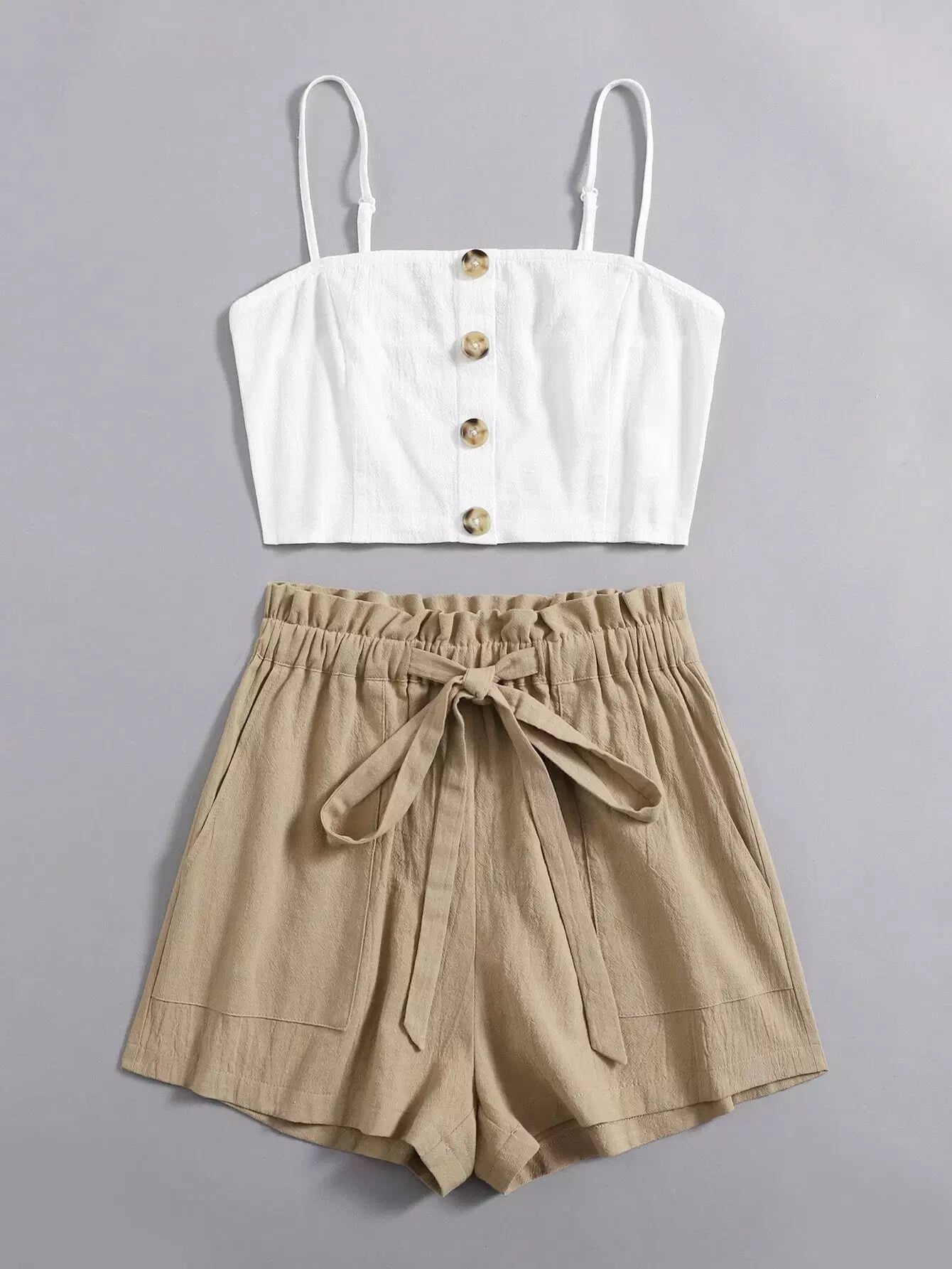 طقم بلوزة بأزرار أمامية بأزرار وشورت بخصر مربوط